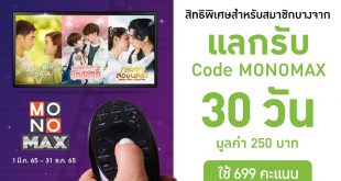 “MONOMAX” (โมโนแมกซ์) ผู้ให้บริการดูหนังออนไลน์ ในเครือ Mono Next (โมโน เน็กซ์) เอาใจคนรักหนังและคอซีรีส์สุดฮิต อย่าง โชคดีของหัวใจที่ได้รักคุณ (Lucky with You) , สะดุดรักยัยสาวนักฮอกกี้ (My Unicorn Girl), กระจกส่องนครา (Mirror A Tale of Twin Cities) ฯลฯ มอบสิทธิพิเศษเฉพาะสมาชิกบัตรบางจาก ให้ได้ดูเต็มอิ่มแน่นๆจุกๆ เพียงใช้ 699 คะแนน แลกรับรหัสดูหนังดูซีรีส์ MONOMAX 30 วัน มูลค่า 250 บาท ไปเลย! รับสิทธิได้ตั้งแต่วันนี้ถึงวันที่ 31 ธันวาคมนี้ สอบถามข้อมูลเพิ่มเติมได้ที่ ฝ่ายลูกค้าสัมพันธ์ MONOMAX:Facebook Page: https://www.facebook.com/monomax.me สอบถามข้อมูลบริการเพิ่มเติม โทร: 02 100 7007 เวลา 9.00 – 22.00 น.