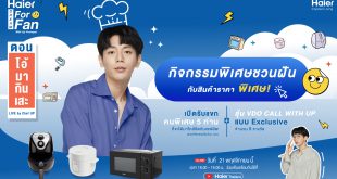 เตรียมมาฟินกับภารกิจสุด Fun ชวนฝันจากไฮเออร์ (Haier) แบรนด์เครื่องใช้ไฟฟ้าภายในบ้าน อันดับ 1 ของโลกติดต่อกัน 12 ปีซ้อน เอาใจเหล่าแฟนคลับจัดกิจกรรมออนไลน์ แฟนมีท กับ “อัพ” ภูมิพัฒน์ เอี่ยมสำอาง ภายใต้คอนเซ็ปต์ “Dream for Fan” with Up Poompat ชวนแฟน ๆ มาฟินไปกับกิจกรรม “โอ้มากินเสะ Live by Chef Up” ที่แฟนคลับคนพิเศษ จะได้ชิมเมนูสุดพิเศษจากฝีมือไอดอลคนโปรด ด้วยวัตถุดิบที่เหล่าแฟนคลับช่วยกันโหวต พร้อมร่วมเป็นส่วนหนึ่งในการไลฟ์กับเชฟหนุ่มหล่อละมุน “อัพ” ภูมิพัฒน์ เอี่ยมสำอาง ผ่านช่องทาง YouTube: Haier Thailand ในวันอาทิตย์ที่ 21 พฤศจิกายนนี้ เวลา 18.00-19.00 น. โดยระหว่างรับชมไลฟ์ยังมีสิทธิ์ลุ้นรางวัลของที่ระลึกสุดคิ้วท์ พร้อมลายเซ็น จำนวน 5 รางวัลอีกด้วย เติมเต็มทุกความฝันที่มาจากทุกความต้องการของเหล่าแฟนด้อม ที่จะได้สร้างความประทับใจร่วมกันกับไอดอลคนโปรดกับกิจกรรม “โอ้มากินเสะ Live by Chef Up” ที่เหล่าแฟนคลับจะได้ร่วมแชร์ความฝันที่อยากทำร่วมกับ “อัพ” ภูมิพัฒน์ พร้อมช่วยกันโหวตวัตถุดิบสำหรับทำอาหารที่จะมาเป็นโจทย์ให้เชฟอัพได้รังสรรค์เป็นเมนูสุดพิเศษในวันไลฟ์ โดยแฟนคลับสามารถร่วมโหวตวัตถุดิบได้ทาง Haier IG Story ในวันที่ 10 พฤศจิกายนนี้ นอกจากนี้ เหล่าแฟนคลับสามารถร่วมลุ้นเป็นแขกคนพิเศษของเชฟอัพ พร้อมประทานอาหารมื้อพิเศษที่รังสรรค์เมนูจากเครื่องใช้ไฟฟ้าไฮเออร์ในวันไลฟ์เพียง 5 คนเท่านั้น และลุ้น VDO call คนละ 2 นาที จำนวน 5 รางวัล ง่ายๆ เพียงซื้อสินค้าไฮเออร์ที่ร่วมรายรายการ ใน Haier Official Store ทางแอปพลิเคชั่นออนไลน์ Lazada หรือ Link: https://bit.ly/3GUcVxe เพื่อสะสมสิทธิ์ Lucky Draw และยืนยันสิทธิ์ทาง เฟซบุ๊ค : HaierThailand สามารถร่วมสนุกได้ตั้งแต่วันที่ 5-15 พฤศจิกายนนี้ – หม้อทอดไร้น้ำมันไฮเออร์ ความจุ 2.5 ลิตร รุ่น HAF-K25B2 ราคาพิเศษ 990 บาท ช้อป 1 เครื่อง …