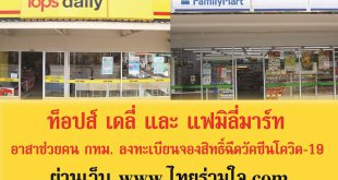 ท็อปส์ เดลี่ และ แฟมิลี่มาร์ท ในเครือเซ็นทรัล รีเทล พร้อมช่วยเหลือประชาชนด้วยความห่วงใย ตอบรับความร่วมมือ กับกรุงเทพมหานคร เปิดเป็นจุดบริการรับลงทะเบียนจองฉีดวัคซีนโควิด-19 ในระบบ “ไทยร่วมใจ กรุงเทพปลอดภัย” ที่ร้านท็อปส์ เดลี่ และ แฟมิลี่มาร์ท รวม 316 สาขา ในกรุงเทพมหานคร เพื่ออำนวยความสะดวกให้ประชาชนในพื้นที่กรุงเทพฯ ที่ยังไม่คุ้นเคยกับการใช้ดิจิทัลแพลตฟอร์มได้เข้าถึงการฉีดวัคซีน หยุดเชื้อ เพื่อชาติ ได้ง่ายและสะดวกมากขึ้น ซึ่งถือเป็นส่วนหนึ่งในพันธกิจที่ให้ความสำคัญกับการดูแลประชาชน พร้อมให้ความร่วมมือและสนับสนุนการปฏิบัติงานของภาครัฐในการควบคุมการแพร่ระบาดมาโดยตลอด ภายใต้โครงการ “ไทยร่วมใจ กรุงเทพปลอดภัย” จะเปิดให้ผู้ที่อาศัยอยู่ในกรุงเทพมหานคร ที่มีอายุตั้งแต่ 18-59 ปี ซึ่งไม่ได้เป็น 7 กลุ่มโรคเสี่ยง ลงทะเบียนจองฉีดวัคซีน โดยพนักงานท็อปส์ เดลี่ และ แฟมิลี่มาร์ท ทั้ง 316 สาขาในกรุงเทพมหานคร พร้อมอาสาลงทะเบียนจองสิทธิ์ฉีดวัคซีนโควิด-19 ให้กับประชาชน ผ่านเว็บไซต์ www.ไทยร่วมใจ.com เริ่มตั้งแต่วันที่ 27 พฤษภาคม 2564 เวลา 12.00 น. เป็นต้นไป ลงทะเบียนสะดวกสบายเราช่วยคุณเอง พนักงานจะให้บริการช่วยลงทะเบียนในระบบ เพียงแสดงบัตรประจำตัวประชาชนพร้อมมาลงทะเบียนด้วยตนเอง ในช่วงเวลา 08.30 – 18.00 น. หลังจากนั้นระบบจะส่ง SMS แจ้งผลการจัดสรรวัคซีน และนัดหมายวัน เวลา สถานที่ฉีดวัคซีน ให้กับผู้ลงทะเบียน สอบถามรายละเอียดเพิ่มเติมและตรวจสอบสาขาที่รับลงทะเบียน …