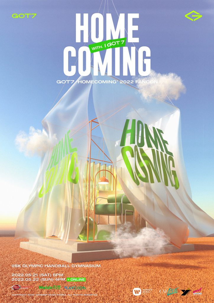 GOT7 (JAYB, MARK, JACKSON, JINYOUNG, YOUNGJAE, BAMBAM, YUGYEOM) เตรียมคัมแบคพร้อมมินิอัลบั้มในวันจันทร์ที่ 23 พฤษภาคมนี้ และพร้อมทั้งจัดการแสดงใน “GOT7 โฮมคัมมิ่ง 2022 แฟนคอน” (GOT7 Homecoming 2022 FanCon) ซึ่งจะจัดขึ้นทั้งหมด 2 รอบ ในวันเสาร์ที่ 21 พฤษภาคม 2565 รอบ Offline จะจัดขึ้นที่ SK Handball Stadium ประเทศเกาหลีใต้ และรอบวันอาทิตย์ที่ 22 พฤษภาคม 2565 จะมีการแสดงทั้งแบบ Offline และ Online