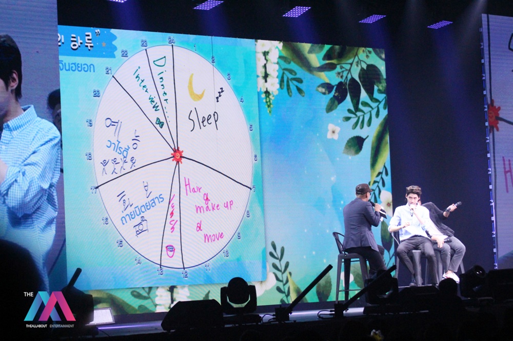 “อี จินฮยอก” เริ่มต้นสร้างความสนุกให้แก่ชาว “วีดันไทย” กับการเปิดตัวด้วยเพลงแดนซ์สุดเท่ Xscape โชว์สเต็ปเรียกเสียงกรี๊ดได้ลั่นฮอลล์จากนั้น “เจริญ แซ่จู” พิธีกรของงานก็ออกมาบิ้วให้ทุกคนเรียก “จินฮยอก” กลับขึ้นเวทีอีกครั้ง เมื่อได้ยินเสียงเรียกดังสนั่น เขาก็ปรากฏตัวด้วยลุคสุดคิ้วท์และทักทายเป็นภาษาไทยอย่างน่ารักว่า “สวัสดีครับ ผมชื่อ จินฮยอก ครับ คิดถึงนะครับ” พร้อมเดินแจกยิ้มหวานให้แฟนๆได้ฟินเบาๆ ก่อนจะเข้าสู่ช่วงแรกกับ “หนึ่งวันของจินฮยอก?” ช่วงเวลาที่ทุกคนจะได้รู้ว่าในหนึ่งวันเขาทำอะไรบ้าง แต่งานนี้เซอร์ไพรส์ยิ่งกว่า เพราะจินฮยอกซุ่มเตรียมของขวัญมาให้ด้วยการทำคลิปวิดีโอสวมบทบาทเป็น วีดันในจินตานาการของตัวเองว่าหนึ่งวันทำอะไรบ้าง พาร์ทนี้ทุกคนลงมติว่าเขารู้ลึกรู้จริง เพราะเลียนแบบได้เหมือนมาก…กกก ขำกันไม่ไหวเลยพ่อเอ้ย!!