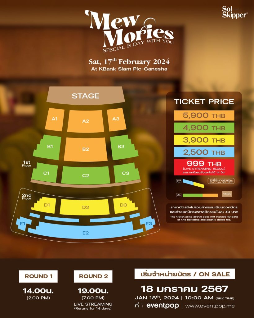ในวันเสาร์ที่ 17 กุมภาพันธ์ 2567 นี้ ณ โรงละครเคแบงก์สยามพิฆเนศ ชั้น 7 สยามสแควร์วัน มีทั้งหมด 2 รอบการแสดงเวลา 14:00 น. และ 19:00 น. บัตรราคา 5,900 / 4,900 / 3,900 / 2,500 บาท และ Live Streaming ราคา 999 บาท เปิดจำหน่ายบัตรวันพฤหัสบดีที่ 18 มกราคม 2567 ผ่านทาง www.eventpop.me