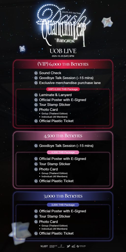 “2025 PLAVE Asia Tour [DASH: Quantum Leap] in Bangkok” ครั้งนี้ จะยกระดับประสบการณ์การดูคอนเสิร์ตให้ก้าวข้ามขีดจำกัดเดิมๆ ด้วยโชว์สุดเซอร์ไพรส์ โปรดักชันระดับโลก แสง สี เสียงจัดเต็ม เซ็ตลิสต์ที่แฟนๆ ต้องร้องตามได้ทุกเพลง พร้อมการแสดงในรูปแบบ Virtual Reality ที่สมจริงจนลืมไปว่านี่คือไอดอลเสมือน!