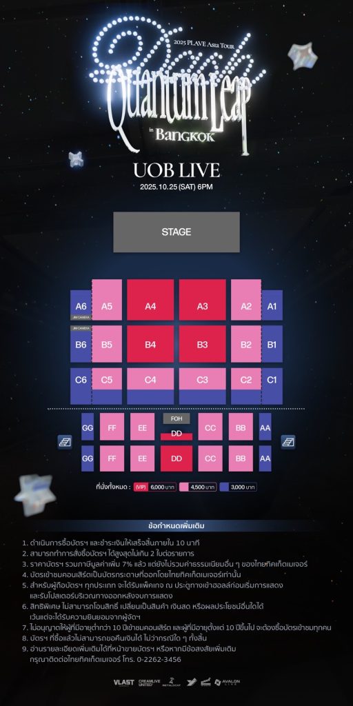 นี่คือคอนเสิร์ตระดับ World Class ที่แฟน PLAVE ห้ามพลาดด้วยประการทั้งปวง! ติดตามรายละเอียดเพิ่มเติมได้ในทุกช่องทางของ Avalon Live บนทุกแพลตฟอร์ม  Facebook: AVALONLIVE  X/Twitter: OfficialAvalon