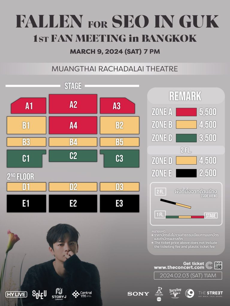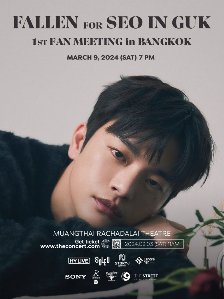 โดยในงาน “FALLEN FOR SEO IN GUK 1st FAN MEETING in BANGKOK” แฟนๆ จะได้รับชมโชว์สุดพิเศษที่ซออินกุกได้ซุ่มซ้อมเป็นอย่างดี จัดเต็มความฟินแบบจุใจเพื่อแฟนๆ ชาวไทยโดยเฉพาะ งานนี้จะฟินและอบอุ่นขนาดไหน เตรียมกดบัตรพร้อมกันวันเสาร์ที่ 3 กุมภาพันธ์ 2567 เวลา 11:00 น. นี้ ราคาบัตร 5,500 / 4,500 / 3,500 / 2,500 บาท (ราคาไม่รวมค่าธรรมเนียมการออกบัตรและค่าบัตรพลาสติก) ซื้อบัตรได้ที่ www.theconcert.com หรือผ่านทางแอปพลิเคชัน The Concert เท่านั้น