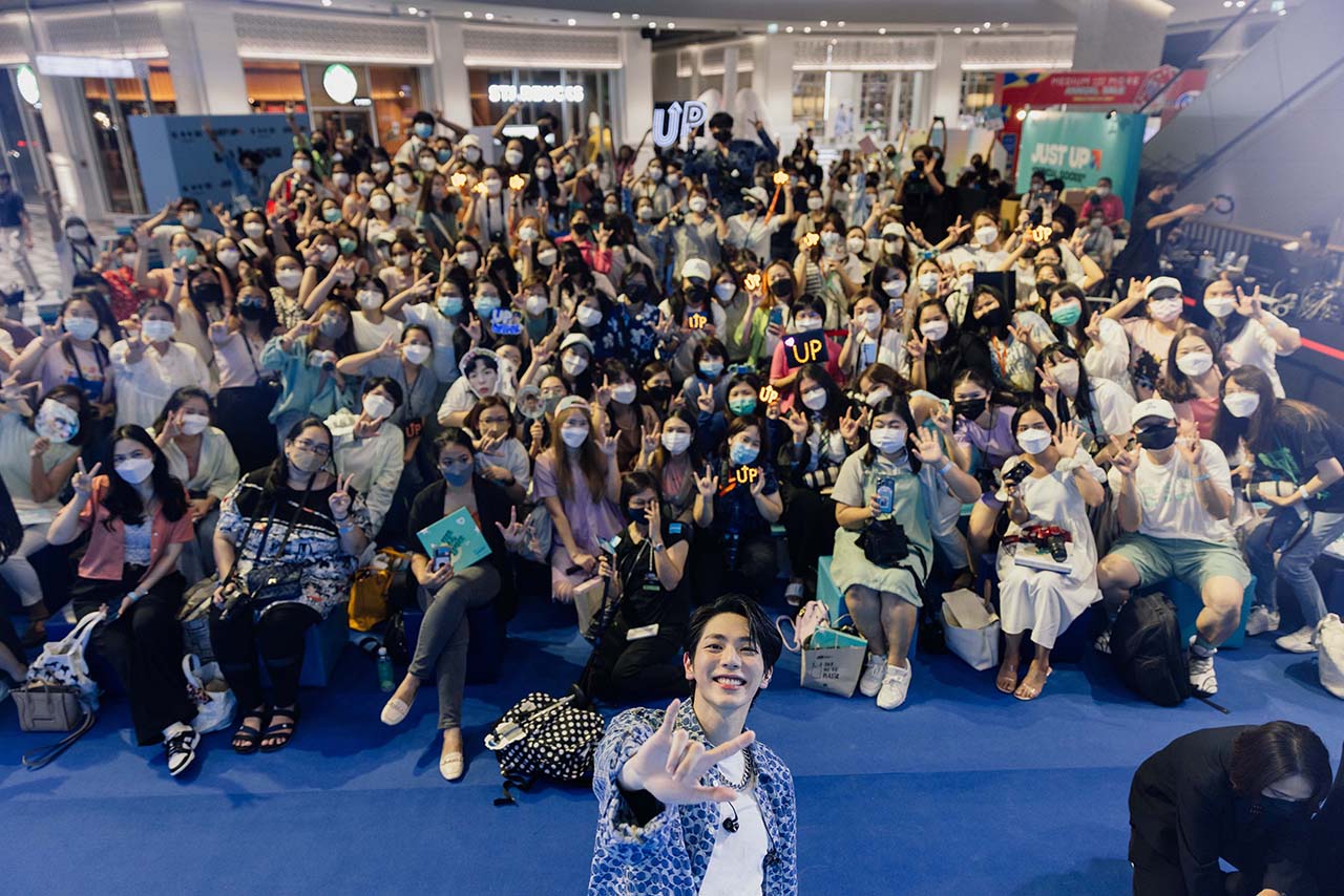 หลังโด่งดังจากผลงานการแสดง อาทิ GGEZ เกรียนเมพเทพศาสตร์ , เด็กใหม่ (Girl From Nowhere) , นับสิบจะจูบ Lovely Writer ฯลฯ จนสาวๆ ทั่วทั้งเอเซียพากันยก 4 ห้องหัวใจให้ ล่าสุดพอหันมาจับไมล์ ก็ยิ่งฮอตฮิตติดเทรนด์ วานก่อน “สามย่านมิตรทาวน์” จึงคึกคักเป็นพิเศษ เมื่อหนุ่มหล่อคิวท์บอยหน้าใส “อัพ” ภูมิพัฒน์ เอี่ยมสำอาง ชักชวนเหล่า #มาโยของอัพ (ชื่อกลุ่มแฟนคลับ) มาร่วมสนุกผ่านกิจกรรม Kseem x JustUp มาสนุกกันครับ…วันของYou” ในวันอังคารที่ 23 สิงหาคมที่ผ่านมา หลังกระแสตอบรับจากซิงเกิ้ลแรก Up To You” มาแรงสุดๆ