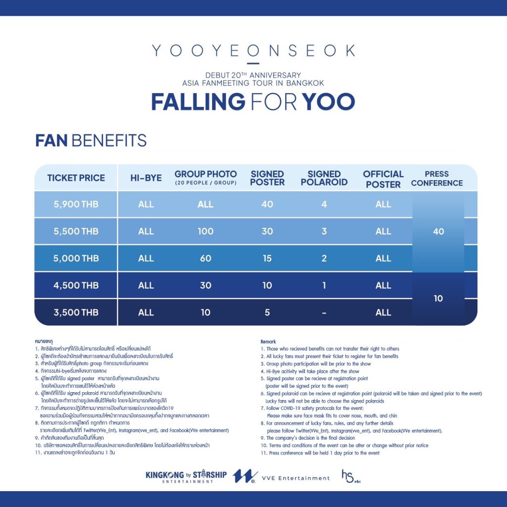 ใกล้เข้ามาทุกทีแล้วสำหรับงาน “YOOYEONSEOK DEBUT 20th ANNIVERSARY ASIA FANMEETING TOUR IN BANGKOK, FALLING FOR YOO” ที่จัดขึ้นในวันเสาร์ที่ 4 พฤศจิกายน 2566 ที่โรงละครเคแบงค์สยามพิฆเนศ งานนี้ผู้จัด VVe Entertainment ใจดีประกาศเพิ่มสิทธิ์พิเศษอีกมากมาย สำหรับแฟนๆ ที่อยากมาเจอยูยอนซอก และยังมีความพิเศษที่ยูยอนซอกเตรียมมาเพื่อแฟนชาวไทยอีกด้วย… แล้วมาเจอกันน้าาา