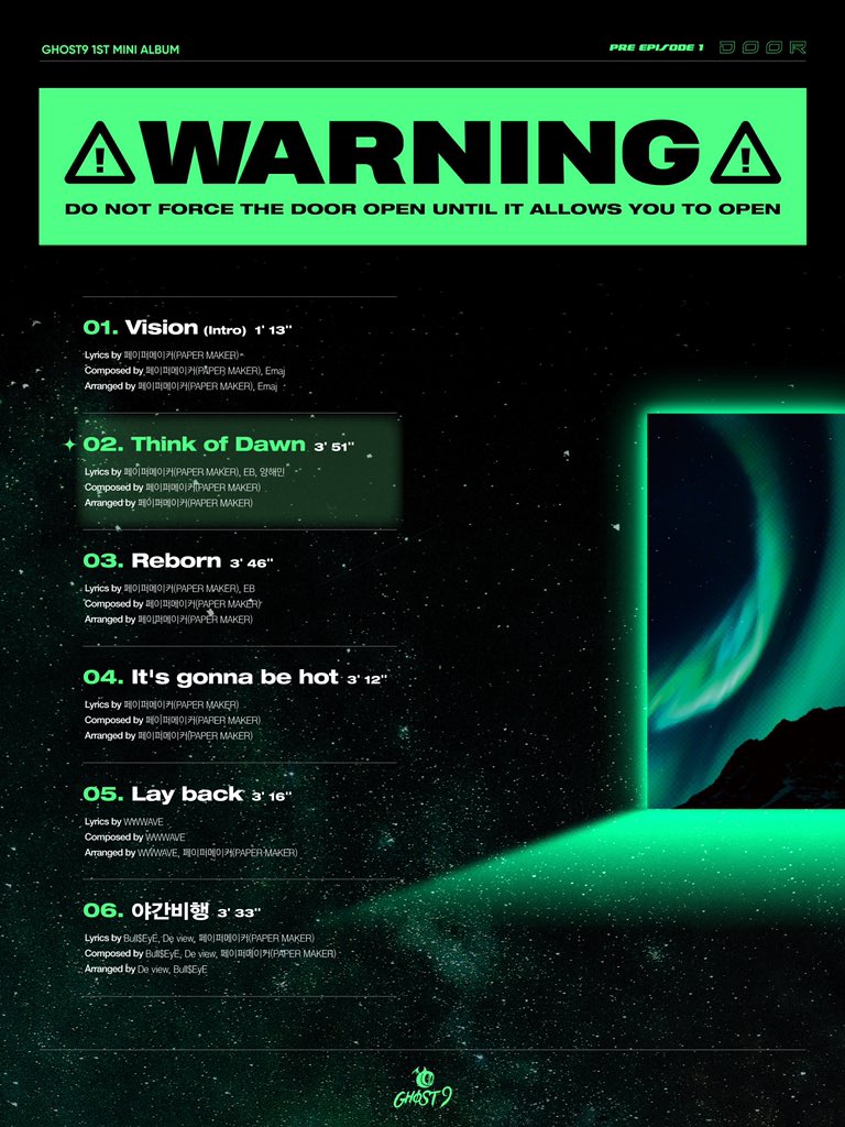 โดยMaroo Entertainment บริษัทต้นสังกัด ได้ประกาศวันเปิดตัวหนุ่ม ๆ GHOST9 ใน Mini Album แรกของพวกเขาที่ชื่อ “Pre-Episode 1: Door.” พร้อมเพลงโปรโมทที่มีชื่อว่า ‘Think of Dawn’ อย่างเป็นทางการในวันที่ 23 กันยายนนี้