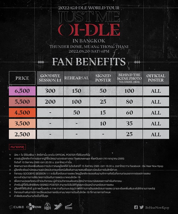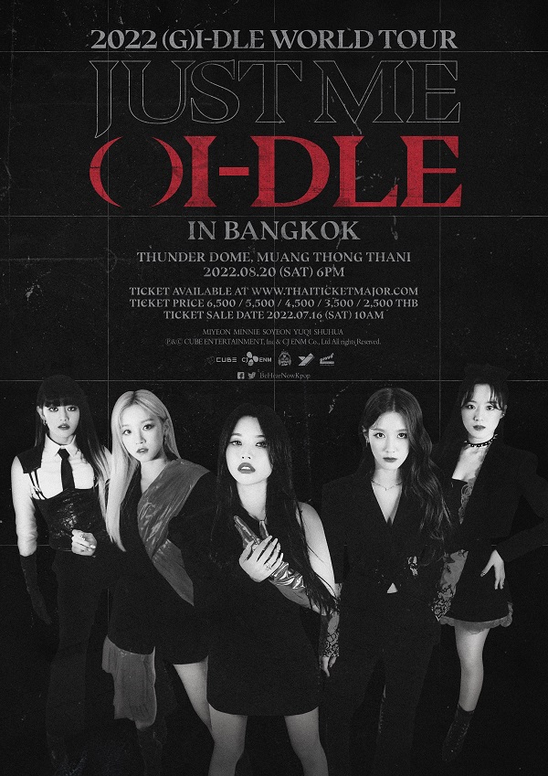 สำหรับ (G)I-DLE World Tour “2022 (G)I-DLE WORLD TOUR [JUST ME ()I-DLE]” เตรียมไปพบกับแฟนๆ ทั่งโลกมากกว่า 16 ประเทศ อย่าง โซล, แอลเอ, ซานฟรานซิสโก, ซีแอทเติล, ดัลลาส, ฮูสตัน, ชิคาโก, นิวยอร์ก, แอคแลนต้า, ซานติเอโก้, เม็กซิโก้ซิตี้, มอนเทรอรี้, จาการ์ต้า, มานิลล่า, โตเกียว, สิงค์โปร์ และกรุงเทพ