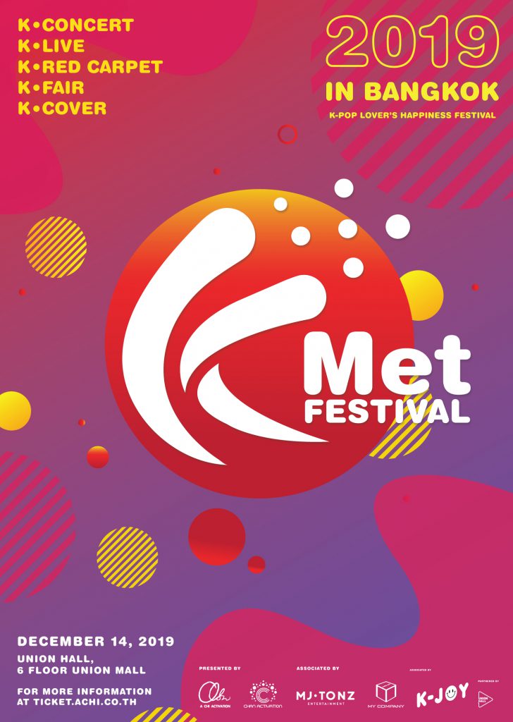 ครั้งแรกในประเทศไทยของ เค เม็ต เฟสติวัล (K Met Festival) กิจกรรมที่สร้างสรรค์เพื่อแฟนคลับเค-ป็อปชาวไทยโดยเฉพาะ ชูไฮไลท์ด้วย เค-คอนเสิร์ต (K-CONCERT) คอนเสิร์ตที่เต็มไปด้วยความสนุกและความสุข ด้วยไลน์อัพ 4 ศิลปินเกาหลี ซึ่งต่างเป็นที่ชื่นชอบของแฟนๆชาวไทย ครั้งนี้พวกเขาจะมาพร้อมคอนเสิร์ตอย่างเต็มอิ่ม-เต็มรูปแบบ!! ไม่เพียงเท่านั้น ทุกศิลปินยังร่วม เค-เรด คาร์เพท (K-RED CARPET) ให้แฟนคลับได้พบปะอย่างใกล้ชิดในช่วงเดินพรมแดง พร้อมทั้งช่วง เค-ไลฟ์ (K-LIVE) ซึ่งแฟนๆ จะได้ทำกิจกรรมแฟนมีตติ้งในรูปแบบไลฟ์ด้วยการพิมพ์พูดคุยกับศิลปินได้สดๆ ผ่านหน้าจอ แล้วยังมีพื้นที่แห่งไอเดียสร้างสรรค์ อย่าง เค-แฟร์ (K-FAIR) ซึ่งเหล่าเค-ป็อป เลิฟเวอร์ส สามารถปล่อยของอย่างเต็มที่ไปกับการออกร้านจำหน่ายสินค้าจากแฟนคลับ-เพื่อแฟนคลับ พร้อมด้วยบูธสินค้าจากประเทศเกาหลีอีกมากมาย โดยทางผู้จัดเปิดโอกาสให้ผู้ประกอบการท้องถิ่นสามารถมาร่วมออกบูธของตัวเอง สำหรับท่านที่สนใจ สามารถกรอกใบสมัครได้ตั้งแต่วันนี้ – 30 พฤศจิกายน 2562 ผ่านทางเว็บไซต์ ticket.achi.co.th และยังมี เค-โคฟเวอร์ (K-COVER) เปิดเวทีให้กลุ่มโคฟเวอร์แดนซ์เค-ป็อปได้แสดงความสามารถอย่างไร้ขีดจำกัด