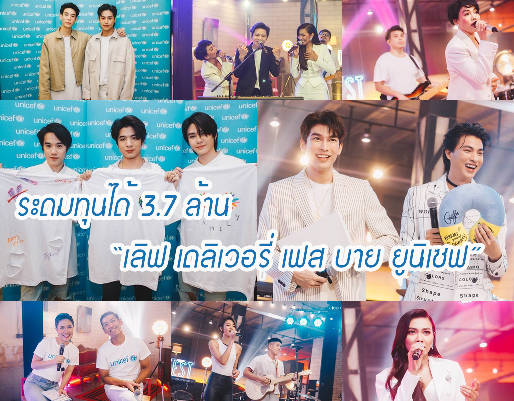 ผ่านไปด้วยความสุขล้นใจทั้งผู้ให้และผู้รับด้วยยอดบริจาคกว่า 3,718,307 ล้านบาท!! สำหรับ Love Delivery Fest by UNICEF (เลิฟ เดลิเวอรี่ เฟส บาย ยูนิเซฟ #LoveDeliveryFest) เทศกาลดนตรีการกุศลออนไลน์ครั้งแรกของ องค์การยูนิเซฟ ประเทศไทย ที่ได้รับความร่วมมือจากศิลปินดังระดับประเทศและเอเชียไว้มากที่สุดถึง 26 กลุ่มศิลปิน เพื่อระดมทุนช่วยเหลือเด็ก ๆ ที่ได้รับผลกระทบจากสถานการณ์โควิด-19 ทั้งในประเทศไทยและทั่วโลก พร้อมส่งพลังใจให้คนไทยผ่านพ้นวิกฤตไปด้วยกัน ออกอากาศสดผ่านทาง YouTube Channel : WorkpointOfficial เมื่อวันอาทิตย์ที่ 31 พฤษภาคมที่ผ่านมา