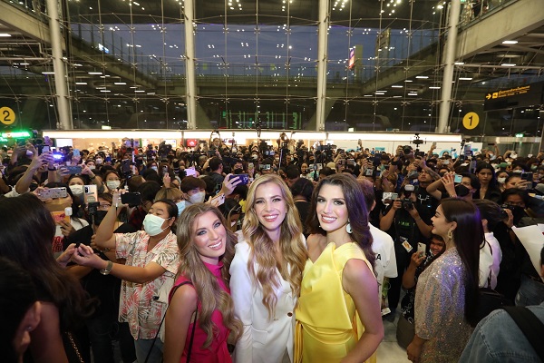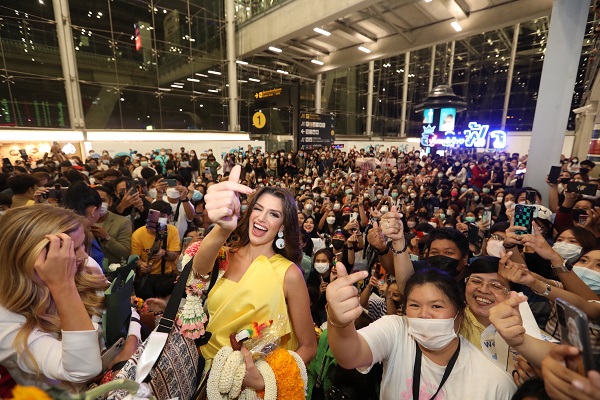 สนามบินสุวรรณภูมิแตกแล้ว!! เมื่อแฟนนางงามรวมตัวกันต้อนรับการเดินทางมาประเทศไทยของ “ควีนอิสเบลลา” มิสแกรนด์ อินเตอร์เนชั่นแนล 2022 พร้อมด้วยรองทั้ง 9 ตำแหน่ง นำโดย อิงฟ้า วราหะ รองอันดับ 1 มิสแกรนด์ อินเตอร์เนชั่นแนล 2022 หลังจาก คุณณวัฒน์ อิสรไกรศีล ประธานเจ้าหน้าที่บริหาร บริษัท มิสแกรนด์ อินเตอร์เนชั่นแนล จำกัด (มหาชน) และ คุณเทเรซ่า ชัยวิสุทธิ์ รองประธาน มิสแกรนด์ อินเตอร์เนชั่นแนล โพสต์แจ้งกำหนดการเดินทางมาประเทศไทยของเหล่าควีน โดยสายการบินไทย เที่ยวบินที่ TG 434 เวลา 16.35 น. แฟนคลับ อิงฟ้า วราหะ และแฟนนางงามไม่พลาด แห่มารอรับบริเวณจุดนัดพบ ประตู 2 อาคารผู้โดยสารขาเข้า สนามบินสุวรรณภูมิ ตั้งแต่ช่วงเที่ยง พร้อมป้ายไฟ โปสเตอร์ ดอกไม้ ฯลฯ โดยทีมมิสแกรนด์ไทยแลนด์ 2022 ไฮดี้ อมันดา อแมนด้า เจนเซ่น ,บิวตี้ -วรัญชนา ระดมเล็ก ,มาลัยกะ คาร เตรียมพวงมาลัยต้อนรับ ตามมาด้วย มีมี กัลย์สุดา ชนาคีรี มิสแกรนด์ เมียนมาร์ 2022 พิม พิมพ์จิรา เจริญลักษณ์ มิสแกรนด์กรุงเทพมหานคร 2023 และ วาเนสซ่า ณัฐชา เว้งค์ มิสแกรนด์สระบุรี 2023 ฯลฯ ท่ามกลางทัพสื่อมวลชนที่มาร่วมบันทึกภาพประวัติศาสตร์ในครั้งนี้อย่างคึกคัก