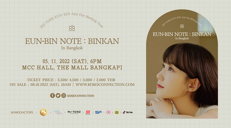 เอเชียแฟนมีตติ้งทัวร์ครั้งแรกของ “พัคอึนบิน” นักแสดงสาวสุดฮอตจากซีรีส์เกาหลีสุดฮิตเรื่อง “อูยองอู ทนายอัจฉริยะ” (Extraordinary Attorney Woo) ได้รับกระแสตอบรับเป็นอย่างดีมากๆ ในหลายประเทศ รวมถึงงาน 2022 PARK EUN-BIN Asia Fan Meeting Tour <EUN-BIN NOTE : BINKAN> In Bangkok ที่กำลังจะจัดขึ้นในวัน เสาร์ที่ 5 พฤศจิกายน 2565 เวลา 18.00 น. ที่ เอ็มซีซีฮอลล์ เดอะมอลล์บางกะปิ เหล่าคอซีรีส์เกาหลี และแฟนๆที่ชื่นชอบในตัวสาวพัคอึนบิน ต่างให้ความสนใจ และตื่นเต้นที่จะได้พบกับเธอที่ประเทศไทยเป็นจำนวนมาก หลังจากเปิดขายบัตรไปเมื่อวันเสาร์ที่ 8 ตุลาคมที่ผ่านมา