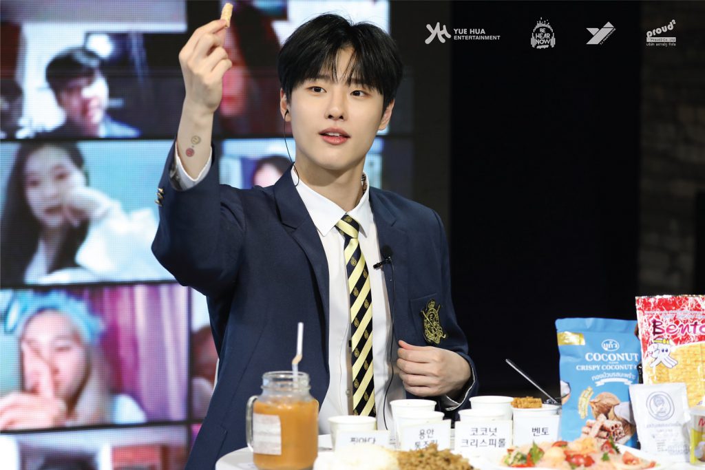 สตาร์ทคาบเรียนแรกด้วยการตอบคำถามจากแฟนๆ เริ่มด้วย อาหารไทยที่ชอบมากที่สุด ซึ่งเขาตอบแบบไม่รีรอว่าเมนูนั้นคือ “ปูผัดผงกระหรี่” แถมยังคอนเฟิร์มเป็นภาษาไทยอย่างชัดถ้อยชัดคำว่า “ปูผัดผงกระหรี่อร่อยมาก” ต่อด้วยมิชชั่นที่ให้ทำ 3 ท่าน่ารัก ที่เจ้าตัวถึงกับออกตัวก่อนเลยว่าปกติเป็นคนที่ไม่ค่อยทำท่าน่ารักเท่าไหร่ แต่ 3 ท่าแอกโย (Aegyo) ที่เขาทำออกมานั้น เรียกได้ว่าน่ารักขาดใจ ทำเอาแฟนคลับที่รับชมผ่านหน้าจอฟินจิกหมอนไปตามๆ กันเลยทีเดียว