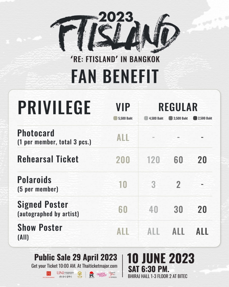 ตื่นเต้นกว่าพรีมาดอนน่าก็ FTISLAND นี่แหละ เอาล่ะ!! พรีมาดอนน่าตั้งนาฬิกาปลุกกันไว้ให้แม่น วอร์มนิ้วรอกันให้พร้อม! เพราะศิลปินมาสปอยขนาดนี้ เราต้องได้บัตรเท่านั้น!! เปิดจำหน่ายบัตรคอนเสิร์ต “2023 FTISLAND LIVE ‘RE : FTISLAND’ IN BANGKOK” ในวันเสาร์ที่ 29 เมษายน 2566 ทางไทยทิคเก็ตเมเจอร์ ทั้งออนไลน์ www.thaiticketmajor.com และหน้าเคาน์เตอร์ทุกสาขา Call Center โทร 02-2623456 บัตรราคา 5,500 / 4,500 / 3,500 / และ 2,500 บาท บัตรทุกราคามีลุ้นสิทธิพิเศษมากมาย คอนเสิร์ตดีๆ ของศิลปินคุณภาพแบบนี้ ไม่ไป ไม่ได้แล้ว สามารถติดตามข่าวคราวความเคลื่อนไหว และรายละเอียดเพิ่มเติมของคอนเสิร์ตครั้งนี้ได้ทาง http://www.facebook.com/ftisland2023bkk
