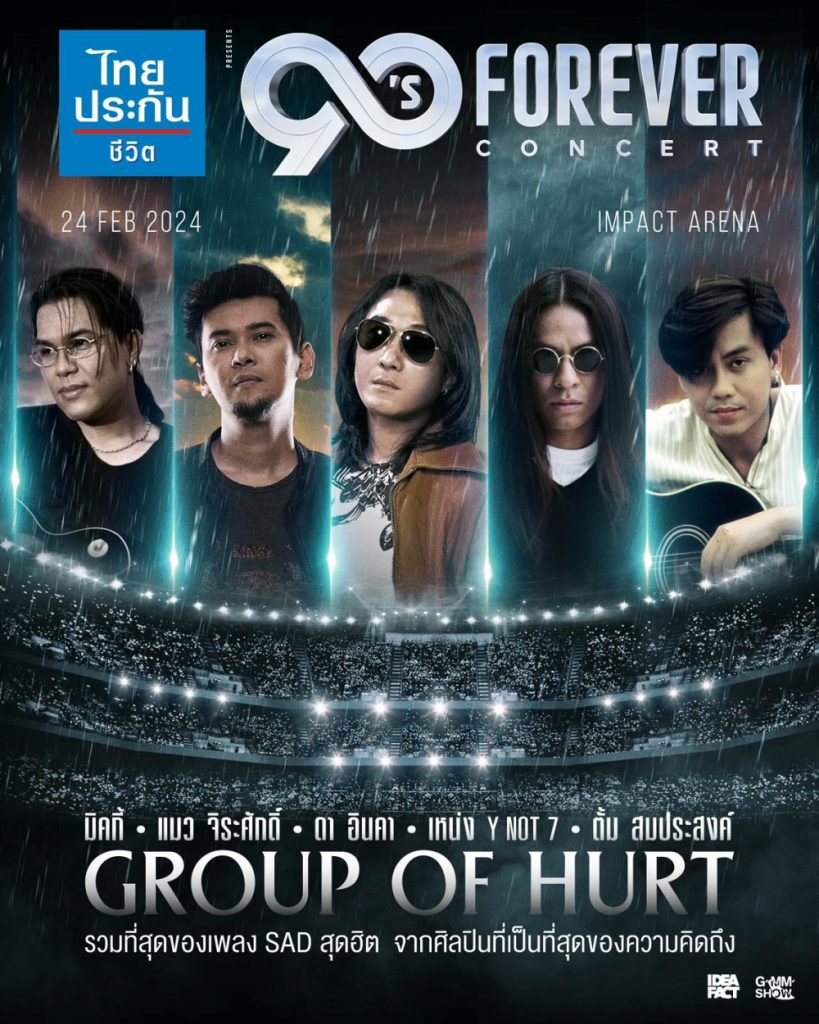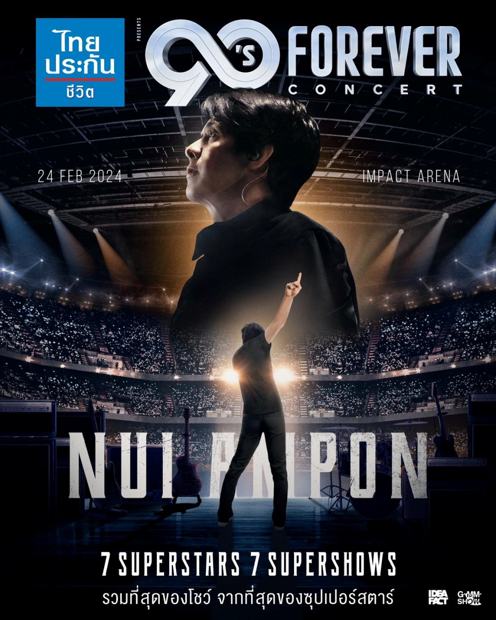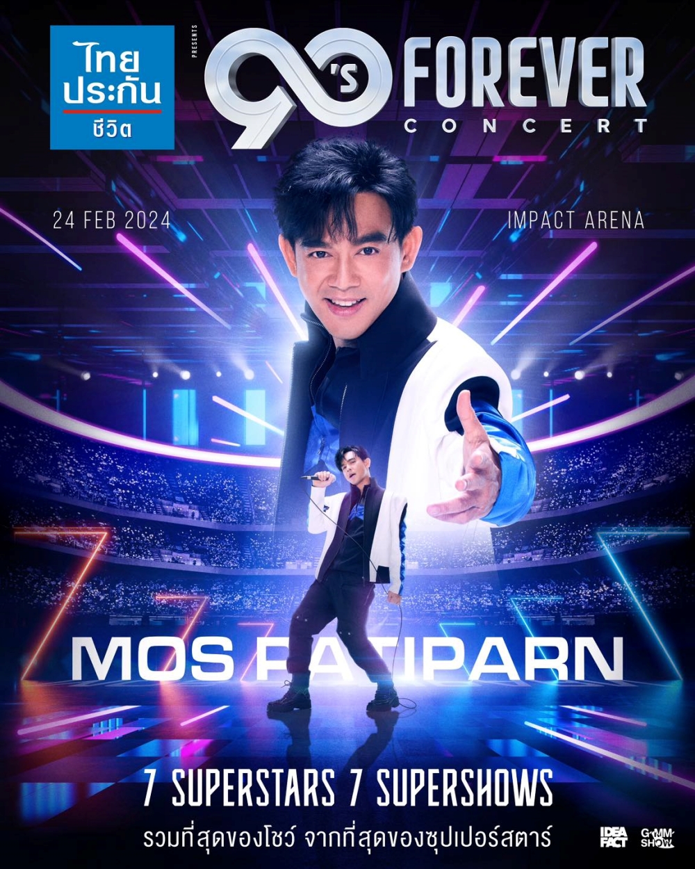 พร้อมสร้างตำนานกันตั้งแต่ต้นปีหลังจากที่ทาง Facebook เพจคอนเสิร์ต: 90’s – 2000’s Concerts ได้ทยอยปล่อย ภาพศิลปิน ยุค 90’s ที่จะมาขึ้นคอนเสิร์ตในครั้งนี้ เพื่อโปรโมทออกมาเรียกน้ำย่อยแฟน ๆ อย่างต่อเนื่อง จนทำให้แฟนเพลงสาวกยุค 90’s ต่างใจจดใจจ่อตั้งตารอคอย การกลับมาของศิลปินที่เป็นระดับตำนานในดวงใจ ล่าสุดทางผู้จัดคอนเสิร์ต ‘GMM SHOW’ พร้อมแล้วที่จะส่งความสนุกสุดมันส์ ที่ในครั้งนี้อาจเป็นครั้งแรกและครั้งเดียว ที่ศิลปินระดับตำนานทั้ง 7 คนจะมาอยู่บนเวทีเดียวกันใน ‘ไทยประกันชีวิต presents 90’s FOREVER CONCERT’ จะจัดขึ้นในวันเสาร์ที่ 24 กุมภาพันธ์ 2567 ณ อิมแพ็ค อารีน่า เมืองทองธานี