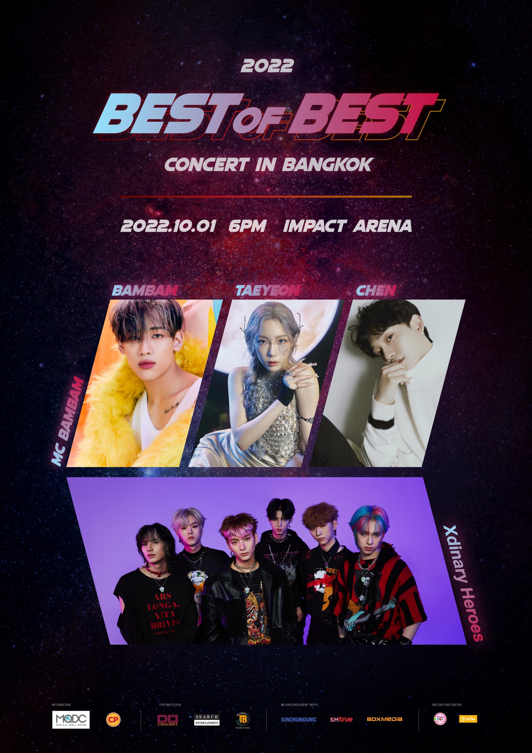 อดใจรอกันไม่ไหวแล้วหลังจากแฟนๆ ได้เห็นไลน์อัพศิลปินที่จะมาเข้าร่วมคอนเสิร์ต 2022 BEST OF BEST CONCERT IN BANGKOK ไม่ว่าจะเป็นโวคอล ควีน แทยอน (TAEYEON) Girls’ Generation, เมนโวคอลเสียงทรงพลัง CHEN EXO, ไอดอลขวัญใจชาวไทย แบมแบม GOT7 โดยนอกจากเตรียมโชว์มาฝากชาวอากาเซ่แล้ว แบมแบม ยังรับหน้าที่เป็น MC อีกด้วย และ ไอดอลแบนด์น้องใหม่จาก JYP อย่าง Xdinary Heroes ซึ่งถือเป็นครั้งแรกของหนุ่มๆ ที่ได้มาเยือนเมืองไทย เรียกได้ว่าเป็นการรวมตัวพ่อ ตัวแม่ที่จะยกทัพมาจัดเต็มความสนุก คุ้มค่าทุกโซนบัตร