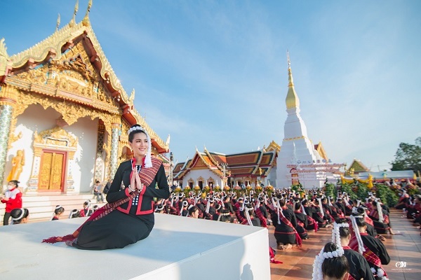 สวยสะกด “เมย์-ณัฐพัชร” นางเอกช่อง 8 ร่วมรำภูไทสกลนคร ถวายพระธาตุเชิงชุม จังหวัดสกลนคร