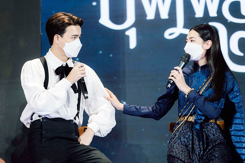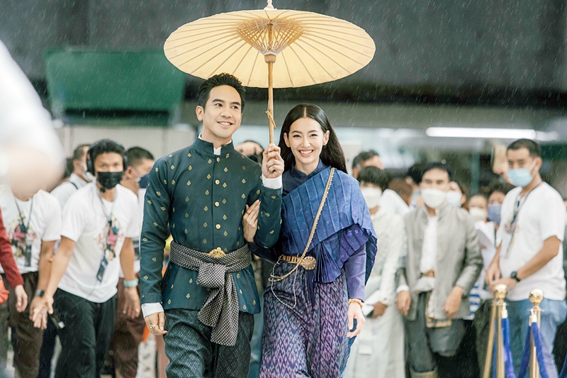จากนั้นถึงเวลาที่เหล่าออเจ้า ต่างพากันกรี๊ดสุดเสียง เมื่อ คุณพี่โป๊ป และ แม่หญิงเบลล่า เปิดตัวเดินควงคู่กันผ่านบันไดเลื่อน เดินเข้าสู่บริเวณงาน ด้วยคอสตูมชุดไทยจัดเต็มและอินเนอร์สุดต๊าซ เหมือนเดินทะลุออกมาจากในหนัง ทำเอาแฟน ๆ ที่รวมตัวชูป้ายไฟต้อนรับทั้งคู่อย่างเนืองแน่น ถึงกับปลื้มใจไปตาม ๆ กัน