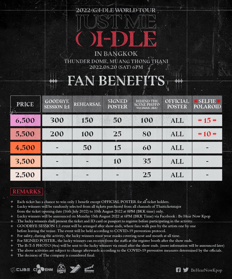 และแน่นอนว่า (G)I-DLE WORLD TOUR [JUST ME ( )I-DLE] LIVE IN BANGKOK ขอบอกได้เลยว่า นอกจาก จีไอเดิล (G)I-DLE จะเตรียมขนเซทลิสต์และชุดการแสดง มาจัดเต็มใหกับแฟนเพลงชาวไทยแล้ว บอกได้เลยว่าคอนเสิร์ตในครั้งนี้พวกเธอก็ยังเตรียมเซอร์ไพร้ส์มาฝากเนเวอร์แลนด์ไทยอีกเพียบ แอบกระซิบบอกกันตรงนี้เลยว่า นอกจากแสง สี เสียง ที่จัดเต็มแล้ว ข่าวดี