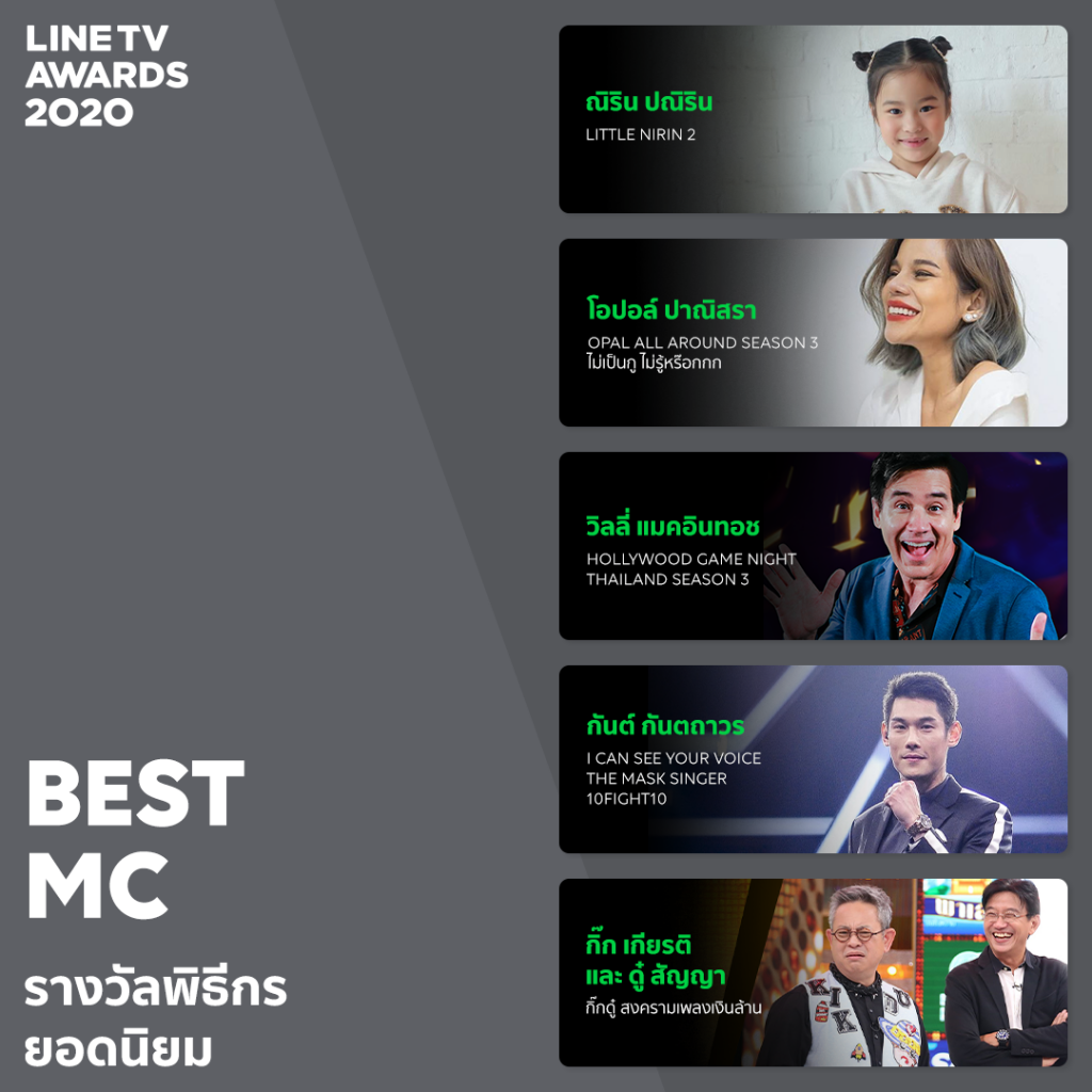 - LINE TV BEST MC รางวัลพิธีกรยอดนิยม