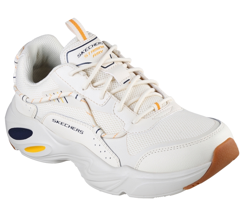 Skechers Stamina Airy สนีกเกอร์รุ่นออริจินัลของสเก็ตเชอร์ที่รีเฟรชลุคใหม่ โดดเด่นตั้งแต่ดีไซน์ที่ใช้หนังผสานกับผ้าตาข่ายสังเคราะห์ได้อย่างลงตัว และเพิ่มความสบายเทคโนโลยีพื้นรองเท้าด้านใน Air-Cooled Memory Foam® แผ่นรองที่ช่วยในเรื่องการระบายอากาศ ไม่อับชื้น และยังช่วยรองรับแรงกระแทกด้วยพื้นรองเท้าชั้นกลางโปร่งสบายช่วยซัพพอร์ตและมอบความนุ่มทุกครั้งที่สวมใส่