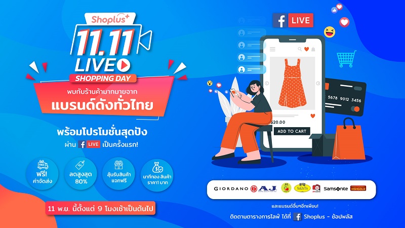 Shoplus บริษัทในเครือ iKala ผู้นำด้านการให้บริการเทคโนยี AI อัจฉริยะ ที่รวมการไลฟ์สดและการจัดออเดอร์เข้าไว้ด้วยกัน จัดงานไลฟ์ช้อปปิ้งเฉลิมฉลองเทศกาล 11.11 ให้ได้ช้อปต่อเนื่องทั้งวันเป็นครั้งแรก ร่วมกับแบรนด์ชั้นนำจากไทยและต่างประเทศโดยใช้เทคโนโลยี Shoplus ในการเพิ่มประสิทธิภาพการไลฟ์สดขายสินค้าบนเฟซบุ๊ก เริ่มตั้งแต่เวลา 9 โมงเช้ายาวต่อเนื่องตลอดทั้งวัน