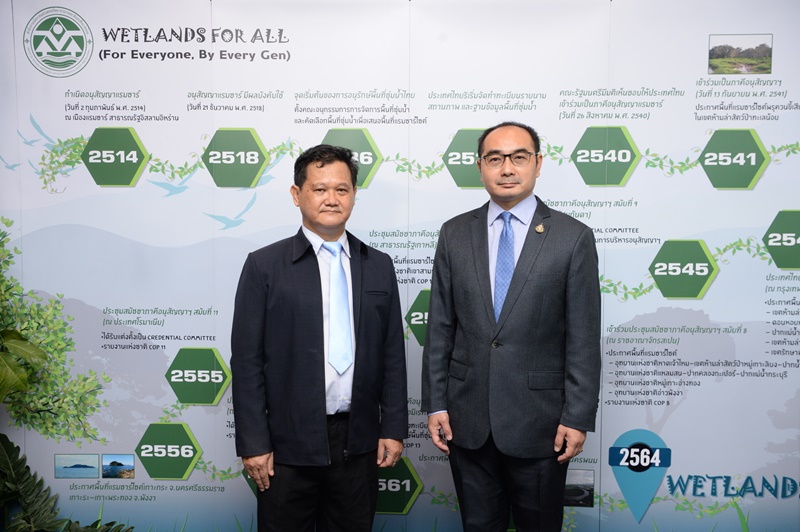 สำนักงานนโยบายและแผนทรัพยากรธรรมชาติและสิ่งแวดล้อม ร่วมกับ กรมทรัพยากรน้ำ และโครงการพัฒนาแห่งสหประชาชาติ (UNDP) จึงจัดกิจกรรมเนื่องในวันพื้นที่ชุ่มน้ำ ประจำปี 2564 เรื่อง Wetlands and Water ผ่านทางสื่อออนไลน์ Facebook: Biodiversity CHM Thailand เพื่อประชาสัมพันธ์ให้หน่วยงานภาครัฐและภาคเอกชน องค์กรพัฒนาเอกชน และประชาชนที่เกี่ยวข้อง ได้ตระหนักถึงความสำคัญและความเชื่อมโยงกันระหว่างพื้นที่ชุ่มน้ำและน้ำ ซึ่งมีบทบาทสำคัญต่อวิถีชีวิตและความมั่นคงทางอาหารของมนุษย์ และเพื่อให้ผู้เกี่ยวข้องเกิดความหวงแหนในการอนุรักษ์และใช้ประโยชน์พื้นที่ชุ่มน้ำอย่างยั่งยืน รวมทั้งสามารถนำประสบการณ์และความรู้จากการจัดกิจกรรมครั้งนี้ไปประยุกต์ใช้กับพื้นที่ชุ่มน้ำอื่น ๆ ต่อไป โดยกิจกรรมภายในงานมีการนำเสนอสารจาก นายวราวุธ ศิลปอาชา รัฐมนตรีว่าการกระทรวงทรัพยากรธรรมชาติและสิ่งแวดล้อม ซึ่งเน้นย้ำให้เห็นถึงความสำคัญในการอนุรักษ์ทรัพยากรธรรมชาติและสิ่งแวดล้อม คือ ความร่วมมือร่วมใจของทุกภาคส่วน ที่จะทำให้ทรัพยากรธรรมชาติและสิ่งแวดล้อมของประเทศไทยคงความอุดมสมบูรณ์ และเป็นที่พึ่งพาอาศัยได้อย่างยั่งยืน สารจาก Ms. Martha Rojas Urrego เลขาธิการอนุสัญญาว่าด้วยพื้นที่ชุ่มน้ำ Mr. Renaud Meyer ผู้แทนโครงการพัฒนาแห่งสหประชาชาติ ประจำประเทศไทย การนำเสนอบทบาทการดำเนินงานในการบริหารจัดการพื้นที่ชุ่มน้ำจาก ดร.รวีวรรณ ภูริเดช เลขาธิการสำนักงานนโยบายและแผนทรัพยากรธรรมชาติและสิ่งแวดล้อม และนายภาดล ถาวรกฤชรัตน์ อธิบดีกรมทรัพยากรน้ำ