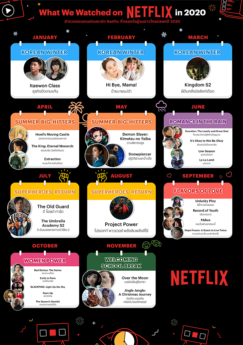 หลายคนได้ขนานนามให้ปี 2020 เป็นปี “มหาโหด” กับสารพัดเหตุการณ์เขย่าโลกที่มารุมเร้าแทบตลอดปี จนแทบจะไม่อยากมองย้อนกลับไปดูว่าเกิดอะไรขึ้นบ้าง แต่ไม่ว่าปีนี้้จะโหดขนาดไหน เน็ตฟลิกซ์ก็ยังคงพร้อมอยู่เคียงข้างผู้ชมทุกหน้าจอ ให้คนไทยได้เพลิดเพลินและคลายเครียดไปกับเรื่องราวดี ๆ หลากรสจากทั่วโลก เราจึงขอชวนทุกคนไปย้อนมองปีที่ผ่านมาบนเน็ตฟลิกซ์ กับเรื่องราวที่ประทับใจที่ผู้ชมชาวไทยมากที่สุดใน 7 มู้ด 11 เดือน แต่หลากหลายรสชาติจนนับอารมณ์ไม่ถ้วนเลยทีเดียว!