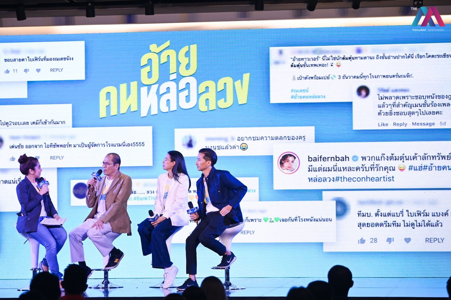“จีดีเอช” จัดงานแถลงข่าวเปิดตัวภาพยนตร์โรแมนติกคอมเมดี้ “อ้าย..คนหล่อลวง” สุดปัง ณ Quartier Gallery ชั้น M ศูนย์การค้า The EmQuartier โดยมีพิธีกรสาว อุ้ม–ขจรกิติ์ พ้นภัย รับหน้าที่พิธีกร พูดคุยกับ 2 โปรดิวเซอร์ เก้ง–จิระ มะลิกุล, วรรณฤดี พงษ์สิทธิศักดิ์ และผู้กำกับ เมษ ธราธร ถึงที่มาที่ไปของหนังเรื่องนี้ ที่ว่าด้วยเรื่องราวโรแมนติกคอมเมดี้ ของนักต้มตุ๋น และการทำมิชชั่นต่างๆ ให้สนุกด้วยรสมือของผู้กำกับเมษ ธราธร จากนั้นร่วมพูดคุยกับนักแสดงนำสุดฮอต ณเดชน์ คูกิมิยะ, ใบเฟิร์น–พิมพ์ชนก ลือวิเศษไพบูลย์ ร่วมด้วย“แบงค์–ธิติ มหาโยธารักษ์, แหม่ม–คัทลียา แมคอินทอช, เผือก–พงศธร จงวิลาส ที่แต่ละคนออกมาปล่อยมุขกันอย่างสนุกสนาน งานนี้ณเดชน์ โชว์ความสามารถพิเศษของ “ทาวเวอร์” ตัวละครในหนัง ด้วยการอ่านปากคนรู้ใจที่สุด ใกล้ตัวที่สุด ซึ่งจะเป็นใครไปไม่ได้นอกจากพี่เอ ศุภชัย ผู้จัดการส่วนตัว เรียกว่าฮากันทั้งงาน และช่วงท้ายของงานยังมีมิวสิกวิดีโอเพลง “พี่ไม่หล่อลวง” เพลงประกอบภาพยนตร์ อ้าย..คนหล่อลวง ที่ได้ซุปตาร์ระดับโลก แบมแบม GOT7 มาร่วมเล่นในมิวสิกวิดีโอเพลงนี้ให้ได้ชมกันเป็นครั้งแรก!! พร้อมกับเหล่านักแสดงแก๊งต้มตุ๋น ออกมาเซอร์ไพร์สผู้ชม ด้วยการโชว์ท่าเต้นสุดน่ารัก พี่ไม่หล่อลวง สร้างความประทับใจให้กับผู้ชมเป็นอย่างมาก