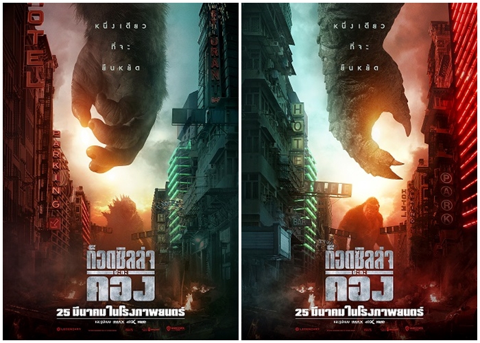 ปล่อยกันมาแบบไม่ขาดสาย เรียกน้ำย่อยกันไม่หยุดหย่อนภาพยนตร์ฟอร์มยักษ์ที่ทุกคนรอคอย “Godzilla vs. Kong – ก็อดซิลล่า ปะทะ คอง” มหากาพย์ภาพยนตร์แห่งจักรวาลมอนสเตอร์เวิร์สของเลเจนดารี่ ที่ปล่อยสองโปสเตอร์ล่าสุดฉบับภาษาไทยที่เราจะได้เห็นมือของ ก็อดซิลล่า และ คอง เตรียมพร้อมมาปะทะแถมยังส่งตัวอย่างเสียงไทยมาเรียกน้ำย่อย ก่อนเสียงรับชมกันแบบเต็ม ๆ 25 มีนาคมนี้ ในโรงภาพยนตร์เท่านั้น
