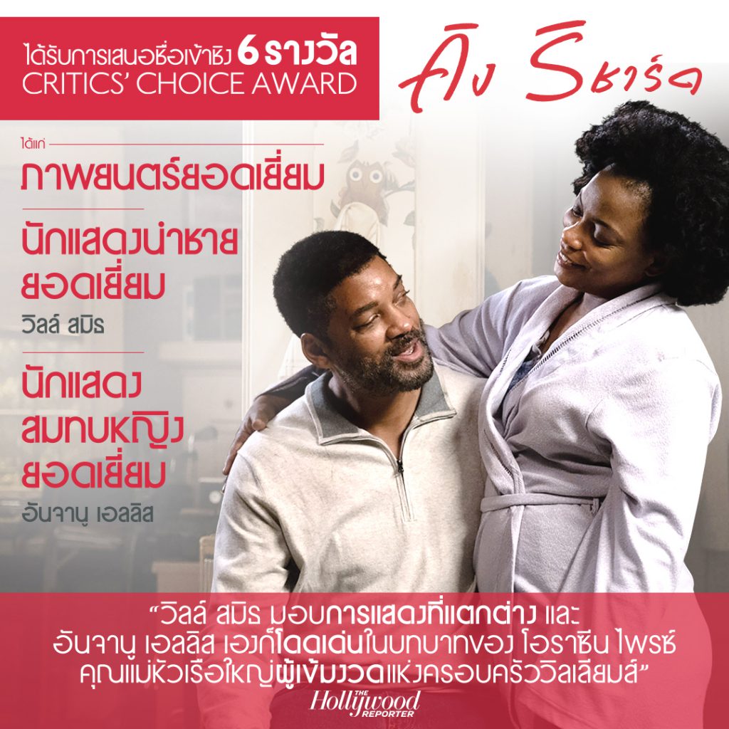 ก่อนที่จะพบกับภาพยนตร์ที่สร้างขึ้นอิงจากเรื่องจริงที่จะสร้างแรงบันดาลใจให้ทั้งโลก “King Richard – คิง ริชาร์ด” ที่เตรียมเข้าฉายในบ้านเรา 17 กุมภาพันธ์นี้ ไปพบกับคลิปเบื้องหลังที่จะทำให้คุณเข้าใจถึงเรื่องราวของ 2 นักกีฬาก่อนจะก้าวเข้ามาเปลี่ยนแปลงงวงการกีฬาเทนนิสตลอดกาล การันตีด้วยการได้รับการเสนอชื่อเข้าชิงและรางวัลยอดเยี่ยมมากมายหลายเวที หลายสาขา ไม่ว่าจะเป็น ผู้กำกับภาพยนตร์ยอดเยี่ยม (เรนัลโด้ มาร์คัส กรีน), นักแสดงนำชายยอดเยี่ยม (วิลล์ สมิธ), นักแสดงสมทบหญิงยอดเยี่ยม (อันจานู เอลลิส)