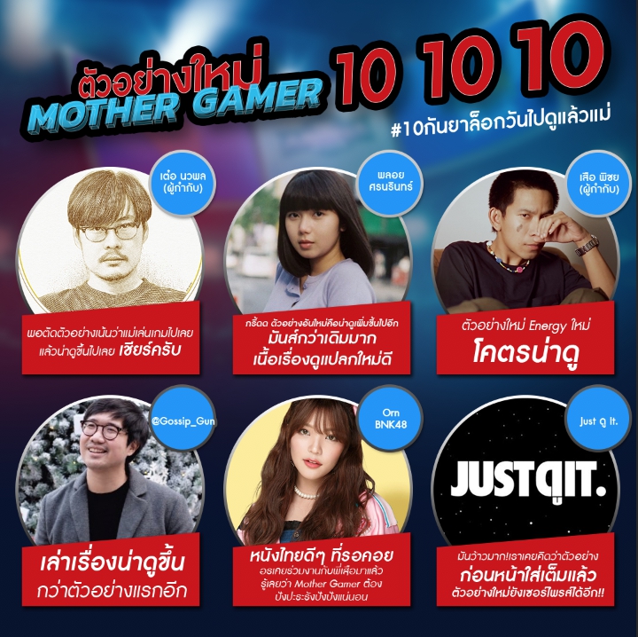 ผู้กำกับ นักร้อง นักแสดง กูรูหนัง เชียร์สุด! ตัวอย่างใหม่ “Mother Gamer” 10! 10! 10! #10กันยาล็อกวันไปดูแล้วแม่