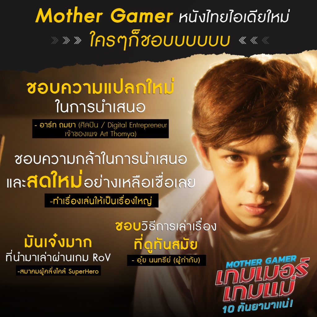 พร้อมแล้วที่ผู้ชมทั้งประเทศจะได้ร่วมพิสูจน์ความมันส์แห่งปีของภาพยนตร์แอคชั่น-อีสปอร์ตเรื่องแรกของเมืองไทยกับ “Mother Gamer เกมเมอร์เกมแม่” เมื่อ “แม่สายเฮี้ยบ” ขอรวมทีมอีสปอร์ตกระโดดเข้าสู่โลกแห่งเกม เพื่อหวังโค่นทีมลูกให้พ่ายแพ้กลางสมรภูมิเดือด “RoV” ล่าสุดสื่อชั้นนำของเมืองไทย และผู้ที่ได้ชมต่างการันตีด้วยกระแสรีวิวบวกยกให้เป็น “ภาพยนตร์ไทยที่ประทับใจ” และชื่นชมไอเดียการนำเสนอของภาพยนตร์เป็นอย่างมาก
