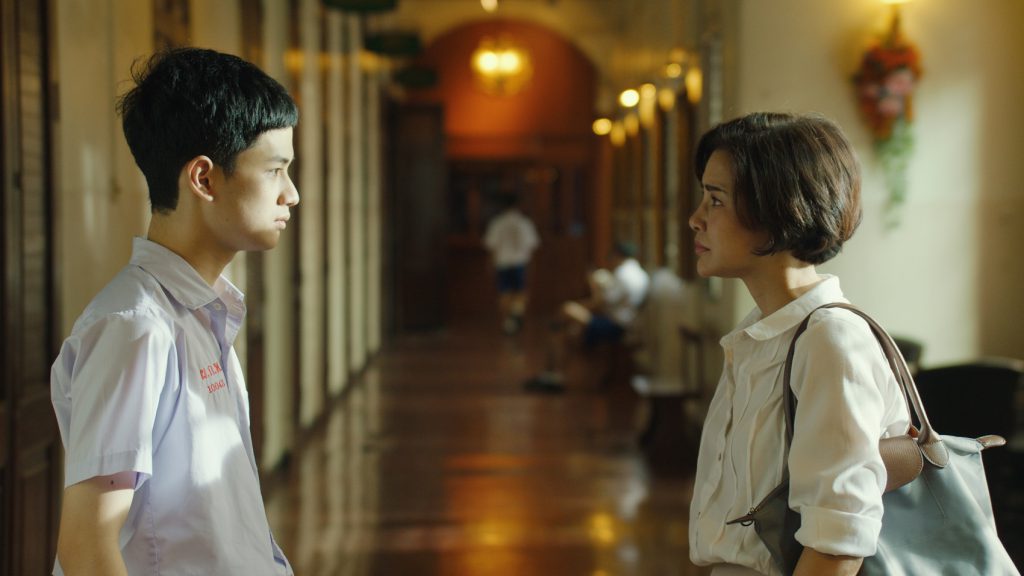 “เราไม่ได้แกล้งนักแสดงนะ แต่ซีนแรกเราก็จับดราม่าคู่กันเลย เนื่องจากเราอยากทำเส้นดราม่าให้จบเพราะว่ามันต้องอาศัยความสดอยู่พอสมควร การส่งรับที่มันต้องไม่ใช่การแสดง มันคือเคมีแล้วตรงกันก็เล่นในจังหวะที่รู้สึกว่าเป็นแม่ลูกกันจริง ๆ ก็เลยอยากได้ความสดตรงนี้ เราเลยจับมาใส่คิวที่ 1-2 ถ้าตรงนี้จบที่เหลือมันก็จะสบาย ซึ่งทั้ง 2 คนก็ทำได้ดีมากทีเดียวคือด้วยพลังการแสดงของพี่อ้อม พลังความเป็นแม่ที่ส่งไปให้ต้นหน ซึ่งเขาก็รับมาและส่งมันกลับไปได้เรารู้สึกแฮปปี้มาก ต้นหนเป็นเด็กที่มีความตั้งใจในหน้ากล้องตอนที่แคสต์ก็รู้สึกเลยว่านี่แหละคือตัวโอม แล้วบทโอมเป็นเด็กน่าสงสารนะเพราะเขายิ้มอยู่แค่ 2 ครั้งในภาพยนตร์เรื่องนี้ เป็นตัวละครที่มีด้านดาร์คที่สุดของหนังเลยก็ว่าได้ ส่วนใหญ่เวลาเวิร์คช้อปกับพี่อ้อมเขาจะเป็นคนที่ชอบซักถาม ขี้สงสัย ตั้งสมมติฐานอะไรอยู่ตลอดเวลา เพราะว่าเขาทำการบ้านเยอะ และก็ออกมาได้อย่างที่พี่คิดไว้ในตัวละคร เบญจมาศกับโอมครับ”