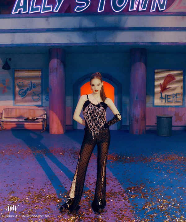 Look 1 : ลุคเปิดตัวของ ALLY นำเสื้อคริสตัลอันโดดเด่นมาสร้างกระแสตั้งแต่แรกเห็น แฟชั่นชุดนี้ทำให้หวนคิดถึงแฟชั่นยุค 70’s โดยเฉพาะกางเกงขาม้า การนำคริสตัลเเละเสื้อปักเลื่อมแมทกับโทนสีดำเป็นความเซ็กซี่ที่พอดีเเต่ทรงพลัง