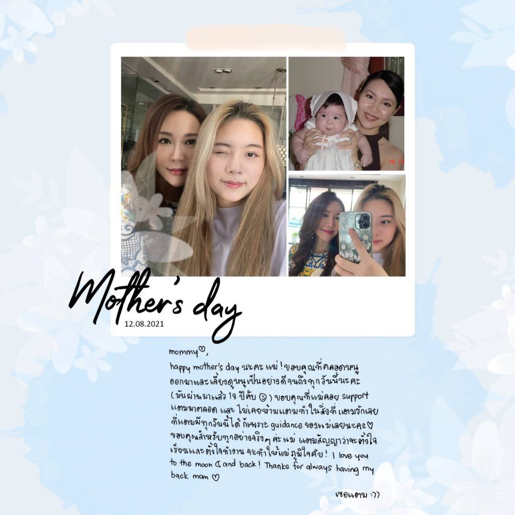 ส่วน เชอแตม เผยความรู้สึกถึงคุณแม่ว่า “ขอบคุณที่คลอดหนูออกมาและเลี้ยงดูหนูเป็นอย่างดีจนถึงทุกวันนี้นะคะ ขอบคุณแม่ที่คอยสนับสนุนมาตลอดและไม่เคยห้ามแตมทำในสิ่งที่แตมรักเลย ที่แตมมีทุกวันนี้ก็เพราะ Guidance ของแม่เลยนะคะ แตมสัญญาจะทำให้แม่ภูมิใจ วันแม่ปีนี้ขอให้คุณแม่สุขภาพแข็งแรง และมีความสุขนะคะ รวมถึงขอให้คุณแม่ของทุก ๆ คนมีสุขภาพแข็งแรงค่ะ”