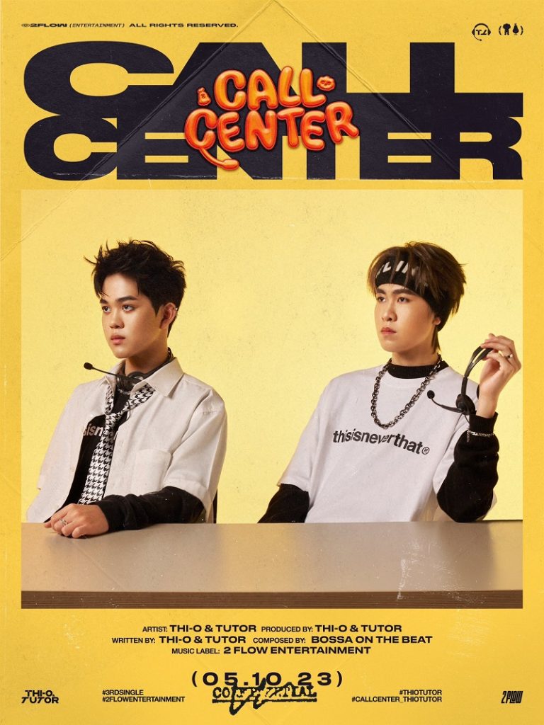 ชมมิวสิควิดีโอ CALL CENTER ได้แล้ววันนี้ที่ YouTube : 2 FLOW Entertainment และติดตามความเคลื่อนไหวของทั้งคู่ได้ที่โซเชี่ยลมีเดีย THI-O & TUTOR ทุกช่องทาง