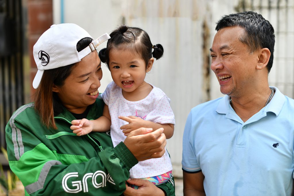 “ที่ผ่านมาพวกเราเรียนรู้ที่จะก้าวข้ามผ่านความท้าทายต่าง ๆ โดยเฉพาะมุมมองและความเข้าใจของคนทั่วไปที่มีต่อคนหูหนวกที่บางครั้งทำให้เรารู้สึกไม่ดี แต่ด้วยความพยายามและการลงมือทำอย่างไม่ยอมแพ้ ทำให้หลายคนเริ่มให้การยอมรับคนหูหนวกมากขึ้น ไม่ตัดสินเราจากภายนอก นอกจากผมและโบว์จะเป็นกำลังใจซึ่งกันและกันแล้ว อีกหนึ่งแรงใจสำคัญคือลูกสาวทั้งสองคน เราทุ่มเททั้งพลังกายและพลังใจเพื่อสร้างโอกาสและอนาคตให้กับพวกเขาเป็นหลัก โดยเลือกทำงานที่ตอบโจทย์ทั้งรายได้ ในขณะเดียวกันก็สามารถบริหารจัดการเวลาให้เหมาะสมเพื่อจะได้ดูแลพวกเขาได้อย่างใกล้ชิด ตัวผมเองนอกจากจะช่วยเหลือธุรกิจครอบครัวแล้ว ยังใช้เวลาว่างไปขับแกร็บคาร์เพื่อรับส่งผู้โดยสารด้วยรถยนต์ ส่วนโบว์จะเน้นขับรถมอเตอร์ไซค์เพื่อส่งอาหารและสิ่งของ ด้วยรูปแบบการทำงานที่ยืดหยุ่นทำให้เรามีอิสระในการรับงานและมีเวลาดูแลครอบครัว รายได้ที่เข้ามาก็ถือเป็นรายได้เสริมที่ทำให้การดำเนินชีวิตคล่องตัวยิ่งขึ้น” คุณโค้กเล่าเสริม