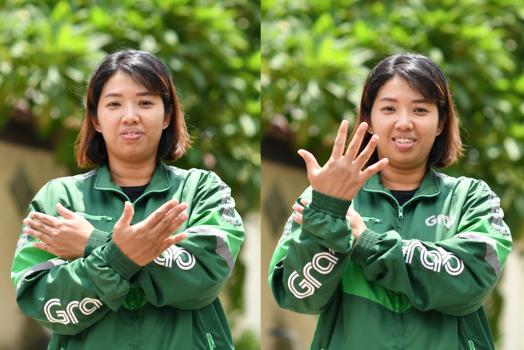 “เวลาที่ขับรถไปส่งอาหาร พอลูกค้าทราบว่าเราเป็นคนหูหนวก บางคนก็จะยื่นรูปภาษามือที่บอกว่า ‘ขอบคุณ’ ให้กับโบว์ ตรงนี้ช่วยทำให้ช่องว่างในการสื่อสารลดลง โบว์มองว่าแอปพลิเคชันต่าง ๆ ช่วยอำนวยความสะดวกให้เรามากขึ้น และยังเปิดโอกาสให้ได้ลองอะไรใหม่ ๆ จากเดิมที่คนหูหนวกมักถูกจำกัดในเรื่องอาชีพ แต่พอมีแอปพลิเคชันอย่างแกร็บเข้ามา ก็ทำให้พวกเรามีทางเลือกในการทำงานมากขึ้น โดยไม่มีข้อจำกัดในด้านอายุ การศึกษาหรือแม้แต่ความพิการ นอกจากจะมีรายได้เสริมแล้ว เรายังได้เปิดประสบการณ์ใหม่ ๆ ได้เจอผู้คนหลากหลายเชื้อชาติ ได้เรียนรู้เส้นทางและคำศัพท์ใหม่ ๆ ซึ่งเป็นสิ่งที่ทำให้เราสนุกกับการทำงานในทุกวัน” คุณโบว์กล่าวเสริม