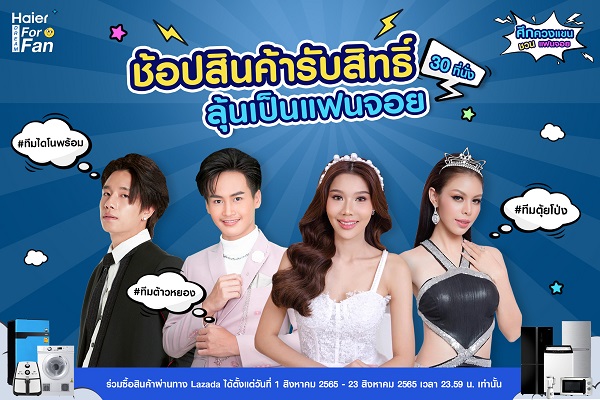 พลาดไม่ได้! กับปรากฏการณ์รวมตัวกันครั้งแรกของศิลปินทั้ง 3 ทีม 3 สไตล์ ในกิจกรรมไลฟ์ “Haier Dream For Fan ศึกควงแขน ชวนแฟนจอย” โดย ไฮเออร์ เชิญชวนเหล่าแฟนคลับมาจอยกัน ให้สุดมัน จัดมาให้ฟินทั้งทีมไดโนพร้อม นำทีมโดย “พร้อม” ราชภัทร วรสาร, ทีมตุ้ยโป่ง นำทีมโดย “ใบเตย” อักษร เบญจนิรัตน์ และ “น้ำเพชร” อิสรีย์ ธรากูลพิพัฒน์ และทีมต้าวหยอง นำทีมโดย “หมูหยอง” ยุคลเดช ปัจฉิม ขอควงแขนแฟนคลับทั้งผ่านหน้าจอ และเจอตัวจริง มาร่วมแข่งขันกันในเกมสุดมันที่แฟนคลับทุกคนต้องร่วมใจกันฟันฝ่าภารกิจให้สำเร็จ จะสนุกแค่ไหน และศึกครั้งนี้ใครจะเป็น No.1 ต้องมาลุ้นกัน!!
