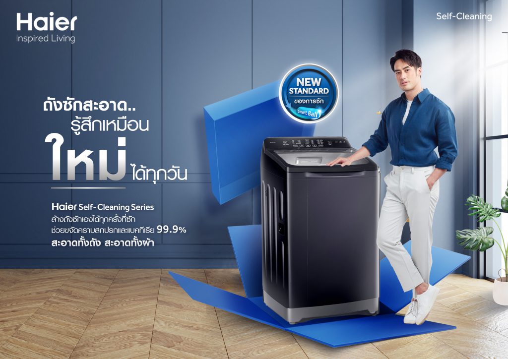 เพราะมุ่งมั่นพัฒนาสินค้าจากความเข้าใจในความต้องการของผู้บริโภคอย่างแท้จริง ไฮเออร์ (Haier) ผู้นำด้านผลิตภัณฑ์และนวัตกรรมเครื่องใช้ไฟฟ้าระดับโลก และแบรนด์เครื่องใช้ไฟฟ้าภายในบ้านอันดับ 1 ของโลกติดต่อกัน 13 ปีซ้อน ส่งโฆษณาตัวใหม่พร้อมนำเสนอเครื่องซักผ้า Self-Cleaning ซีรีส์ใหม่ล่าสุด รุ่น HM150-B1978S8 ที่มาในคอนเซ็ปต์ “ผ้าสะอาด Standard ใหม่ของการซัก” แบรนด์เดียวที่มีเทคโนโลยี Smart Ball ช่วยขจัดคราบสกปรกสะอาดลึกทั้งในและนอกถังซัก ทั้งยังช่วยขจัดแบคทีเรียมากถึง 99.9% ให้การซักผ้าสะอาดยิ่งขึ้น มาพร้อมดีไซน์ทันสมัย ตัวเครื่องสีเทาเข้ม เรียบหรู ดูพรีเมียม ตอบโจทย์ไลฟ์สไตล์ ของบ้านยุคใหม่ให้ลงตัวยิ่งขึ้น