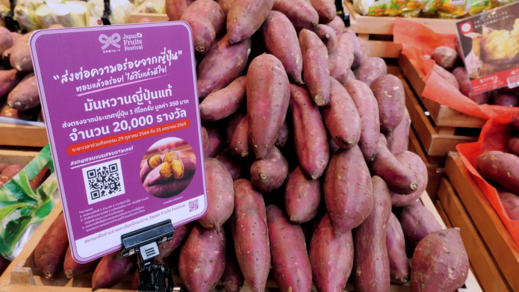 - ช่องทางที่ 3 กิจกรรมตอบแบบสอบถาม “ส่งต่อความอร่อยของญี่ปุ่น” ตอบแล้วอร่อย! ได้รับแล้วดีใจ! เพียงตอบแบบสอบถามที่หน้าร้านหรือบนมือถือ ท่านจะได้รับรางวัลสุดพรีเมียม “มันหวานญี่ปุ่นแท้ ส่งตรงจากประเทศญี่ปุ่น 1 กิโลกรัม” มูลค่า 350 บาท จำนวน 20,000 รางวัล สำหรับคนที่คิดว่า “ผลไม้ญี่ปุ่นดูน่ากิน แต่มีราคาแพง …แต่ว่าก็อยากลองชิมดูสักครั้ง” ห้ามพลาดกิจกรรมดีๆ ถึง 31 มกราคม 2565 เท่านั้น