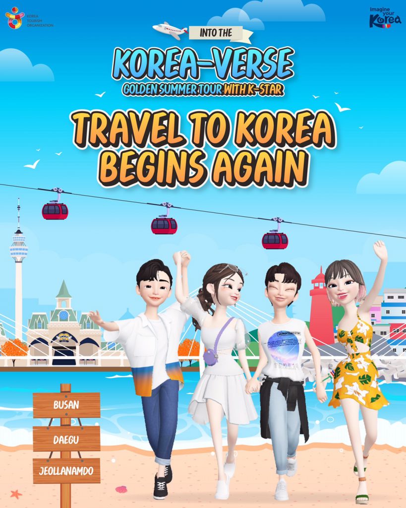 สำหรับกิจกรรม Into the Korea-Verse: Golden summer tour with K-star “Travel to Korea Begins Again” KTO พร้อมเปิดให้คุณได้สัมผัสประสบการณ์สุดพิเศษในการเที่ยวเกาหลีทั้ง 3 เมือง ได้แก่ ปูซาน แทกู และชอลลานัมโด(มูอัน) ในรูปแบบใหม่ “Metaverse” พร้อมสถานที่ท่องเที่ยวใหม่ ผ่านแอปพลิเคชัน Zepeto ที่สามารถออกแบบตัวอวาตาร์ของตัวเองได้แล้ว และหากใครอยากไปเห็นความสวยงาม ของทั้ง 3 เมืองนี้ด้วยตาตัวเอง สามารถบินตรงจากกรุงเทพฯ ไปลงทั้ง 3 เมืองได้แล้วอีกด้วย