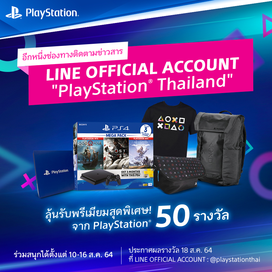Sony Interactive Entertainment Singapore มีความยินดีประกาศเปิดตัวไลน์แอคเคาท์อย่างเป็นทางการของ PlayStation Thailand: https://line.me/R/ti/p/@playstationthai โดยมีเป้าหมายเพื่อสานความสัมพันธ์กับนักเล่นเกมและแฟน ๆ ของ PlayStation ในประเทศไทยผ่านช่องทางแอปพลิเคชั่นไลน์
