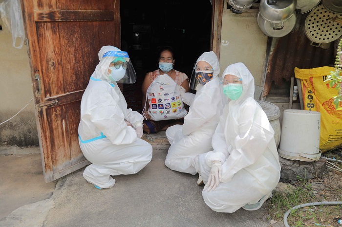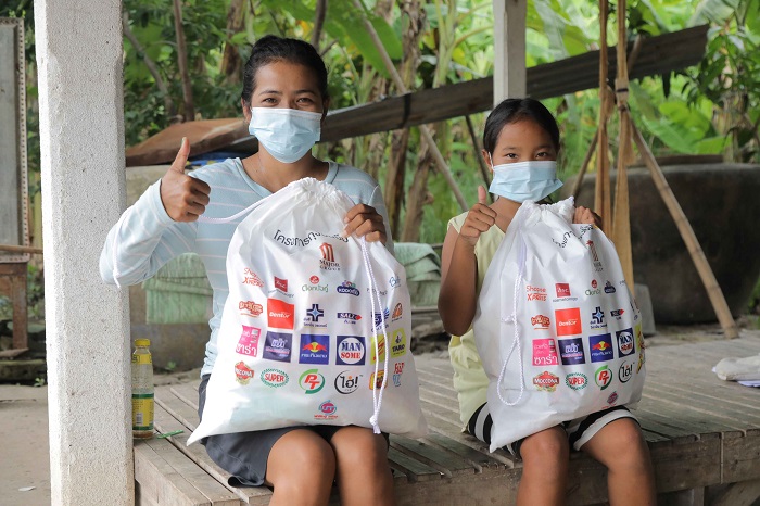 นอกจากนี้ ยังได้ลงพื้นที่แจกจ่ายถุงปันยิ้ม โดยได้รับการสนับสนุนจาก Shopee Express ในการอำนวยความสะดวกเรื่องการขนส่งถุงปันยิ้มไปยังชุมชน 70 ไร่ คลองเตย, ชุมชนวัดท่าตอ อำเภอมหาราช จ.อยุธยา และโรงพยาบาลพระนครศรีอยุธยาให้กับพี่น้องที่ได้รับความเดือดร้อน และมีความเสี่ยงสูงในการติดเชื้อโควิด 19 ซึ่งภายในถุงปันยิ้ม ประกอบด้วยผลิตภัณฑ์สำหรับทำความสะอาด และดูแลสุขภาพอนามัย ได้แก่ ผงซักฟอกเปา ซิลเวอร์ นาโน XPERT, ยาสีฟันซอลส์ตรีผลา, น้ำยาบ้วนปากซอลล์เกลือสมุนไพรอายุรเวท สูตรข่อย และสูตรตรีผลา, แปรงสีฟันเดนเทอร์ โปร คลีน, ยาสีฟันเด็กโคโดโม สูตรอัลตร้า ชิลด์ ชนิดครีม รสสตรอเบอร์รี่, แปรงสีฟันเด็กโคโดโม รุ่นซอฟท์ แอนด์ สลิม, แป้งเด็กโคโดโม สูตรเจนเทิล ซอฟท์, ผลิตภัณฑ์ซักผ้าเด็กโคโดโม โอกานิคุ สูตรนิวบอร์น กลิ่นเนเชอรัล บลูมมิ่ง, ฮันนี่ วี บีเอสซี สวีท ฮันนี่ แบร์ แอลกอฮอล์ แฮนด์ เจล, ดอกบัวคู่ แชมพูสมุนไพร สูตรซีรั่ม, สบู่สมุนไพรดอกบัวคู่ แอนตี้แบคมังคุด, กระดาษทิชชู่จาก บมจ.โอสถสภา, เบบินี่ คูลแพด, โปรวาเมด แอสตาแซนทีน คลีนซิ่ง โฟม, ซาร่า พาราเซตามอล รวมทั้งเครื่องดื่ม อาหารกระป๋อง และขนม ได้แก่ น้ำดื่มจาก PTG, กระทิงแดงจีทูผสมโสมเอเชียสกัด, เครื่องดื่มเกลือแร่สปอนเซอร์ GO, เครื่องดื่มแมนซั่ม ผสมคอลลาเจน, ไฮ่ เครื่องดื่มผสมวิตามินซี 200%, ยันฮี วิตามิน วอเตอร์, ดอกบัวคู่เครื่องดื่มรังนกแท้สำเร็จรูป, ปลากระป๋องตราสามแม่ครัว, มันฝรั่งกรอบ ตรา ปาปริก้า, ทาโร ไลท์, มาชิตะฟันขนมข้าวโพดอบกรอบ, กาแฟมอคโคน่า 3 in 1, ซุปเปอร์กาแฟ 3 in 1 และลูกอมกลิ่นลิ้นจี่ ตราฟุซฟิซ