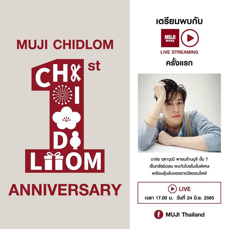 ฮอตโดนใจสายมินิมัลลิสท์! พระเอกหนุ่ม มาร์ช–จุฑาวุฒิ ภัทรกำพล เลยเป็นคนดังคนแรก!! ที่ มูจิ ประเทศไทย ชวนมาร่วมงานด้วย ในโอกาสฉลองครบรอบ 1 ปี มูจิ คอนเซ็ปต์สโตร์ เซ็นทรัล ชิดลม กับแคมเปญ “MUJI CHIDLOM 1st Anniversary” ที่เตรียมมอบความสุขและรอยยิ้มให้กับแฟน ๆ ผ่านกิจกรรม LIVE พาทัวร์ ชมโฉมใหม่ของมูจิ เซ็นทรัล ชิดลม ทุกโซนแบบเอ็กซ์คลูซีฟ แถมยังร่วมพูดคุยแนะนำโปรโมชั่นเด็ด ไฮไลท์ที่ห้ามพลาด และแจกของรางวัลอีกเพียบ! เตรียมตัวกันให้พร้อม ในวันศุกร์ที่ 24 มิถุนายน 2565 ตั้งแต่เวลา 17.00 น. เป็นต้นไป ทาง Facebook: MUJI Thailand