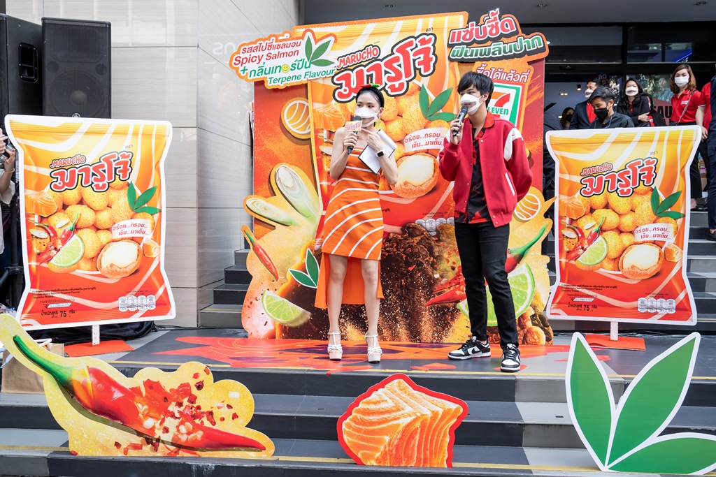 งานนี้ได้นักแสดงหนุ่ม “นนน – กรภัทร์ เกิดพันธุ์” จากซีรีส์วายสุดฮอต เรื่อง แค่เพื่อนครับเพื่อน ทางช่อง GMM25 มาร่วมงานเปิดตัวถั่วลิสงเคลือบอบกรอบ “มารูโจ้ รสสไปซี่แซลมอนกลิ่นเทอร์ปีน” ผลิตโดย บริษัท ฮอกไกโด ฟู้ด แอนด์ เบฟเวอร์เรจ จำกัด เมื่อวันก่อน ณ ลานหน้าอาคาร CP Tower โดยได้รับเกียรติจาก คุณธนากร วัฒนวิจารณ์ ประธานเจ้าหน้าที่บริหาร (บริษัท ฮอกไกโด ฟู้ด แอนด์ เบฟเวอร์เรจ จำกัด) คุณอนุศาสตร์ สระทองเวียน ประธานเจ้าหน้าที่สายงานพาณิชย์ (บริษัท ฮอกไกโด ฟู้ด แอนด์ เบฟเวอร์เรจ จำกัด) และคุณกัญญ์วรา กิรติเสวี ผู้อำนวยการฝ่ายการตลาด (บริษัท ฮอกไกโด ฟู้ด แอนด์ เบฟเวอร์เรจ จำกัด) มาร่วมงานดังกล่าว