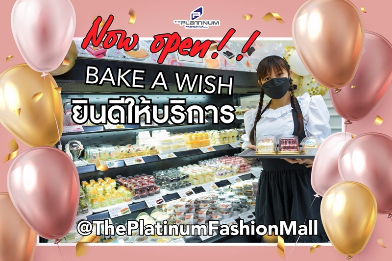 เดอะ แพลทินัม แฟชั่น มอลล์ แนะนำร้านใหม่ Bake A Wish เบเกอรี่สไตล์ญี่ปุ่น ที่พิถีพิถันในทุกขั้นตอนการผลิต ตั้งแต่การคัดสรรวัตถุดิบคุณภาพสดใหม่ ด้วยความใส่ใจในทุกกระบวนการจนได้เบเกอรี่สูตรพิเศษจากเมืองโกเบ (แป้งนุ่มครีมเบารสชาติไม่หวานเลี่ยน) เป็นเฮลท์ตี้เบเกอรี่เหมาะสำหรับทุกเพศ ทุกวัย ภายในร้านตกแต่งด้วยสไตล์ Parisian Cafe ที่ให้ความรู้สึกโมเดิร์นและอบอุ่น พร้อมเสิร์ฟแล้ววันนี้กับเมนูเบเกอรี่และเครื่องดื่มมากมายกว่า 40 ชนิด เช่น ครีมพัฟ (ชูครีม) ซอฟท์ครีมเค้ก (เค้กญี่ปุ่น) ชิฟฟอน ขนมปัง คุ้กกี้ ฯลฯ นอกจากนี้ยังมีเครื่องดื่ม ชา กาแฟ โกโก้ โยเกิร์ต-เชค อิตาเลี่ยน-โซดา ฯลฯ