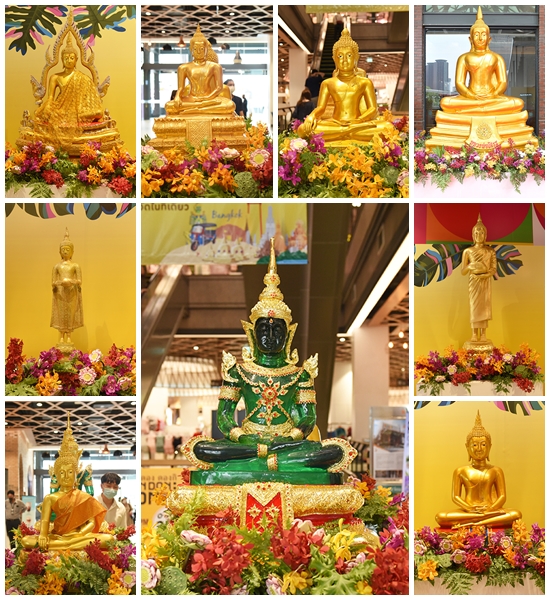 สำหรับกิจกรรมไฮไลท์ต้อนรับเทศกาลมหาสงกรานต์ในปีนี้ ได้มีการอัญเชิญพระพุทธรูปศักดิ์สิทธิ์คู่บ้านคู่เมืององค์จำลองจำนวน ๙ พระองค์ ได้แก่ ได้แก่ ๑. หลวงพ่อพระพุทธโสธร องค์พระเก่าแก่ตั้งแต่ยุคต้นกรุงศรีอยุธยา ประดิษฐาน ณ วัดโสธรวรารามวรวิหาร จ.ฉะเชิงเทรา ลือเลื่องในความศักดิ์สิทธิ์อธิษฐานขอพรได้ครบทุกเรื่อง ๒. หลวงพ่อ วัดไร่ขิง พระคู่บ้านคู่เมืองแห่งลุ่มน้ำนครชัยศรี จ.นครปฐม พุทธคุณด้านรักษาโรคภัยไข้เจ็บ และแคล้วคลาดปลอดภัย ๓. หลวงพ่อ วัดบ้านแหลม พระคู่บ้านคู่เมือง แห่งลุ่มน้ำแม่กลอง จ.สมุทรสงคราม ประชาชนต่างศรัทธาในความศักดิ์สิทธิ์ด้านการป้องกันโรคภัยไข้เจ็บ ปลอดภัยแคล้วคลาด ๔. หลวงพ่อโต วัดบางพลี แห่งลุ่มน้ำเจ้าพระยาประดิษฐาน ณ วัดบางพลีใหญ่ อ.บางพลี จ.สมุทรปราการ ซึ่งประชาชนมีจิตศรัทธาเลื่อมใสในพุทธคุณด้านป้องกันภยันตรายต่างๆ นานา ๕. หลวงพ่อทันใจ พระคู่เมืองแห่งล้านนา ประดิษฐาน ณ วัดพระธาตุดอยคำ อ.เมือง จ.เชียงใหม่ ที่ประชาชนมักเดินทางไปกราบขอพรเสริมสิริมงคลด้านโชคลาภ ธุรกิจรุ่งเรือง ร่ำรวย ๖. หลวงพ่อเงินไหลมาเทมา แห่งวัดท่าซุง จ.อุทัยธานี ที่เชื่อกันว่าบันดาลลาภ การงาน การเงิน ธุรกิจ และผู้ที่ขอพรก็ประสบความสำเร็จกันมาแล้วนับไม่ถ้วน ๗. พระพุทธชินราช พระสำคัญคู่บ้านคู่เมืองแห่งพิษณุโลก ที่ได้รับการยกย่องว่ามีพุทธลักษณะงดงามที่สุดในประเทศไทย ประดิษฐาน ณ วัดพระศรีรัตนมหาธาตุ อ.เมือง จ.พิษณุโลก ผู้ใดได้ไปสักการะกราบขอพรจะมีแต่ความร่มเย็นเป็นสุข เจริญรุ่งเรืองในทุกด้าน ๘. พระพุทธมหามณีรัตนปฏิมากร (พระแก้วมรกต) พระคู่เมืองแห่งรัตนโกสินทร์ ประดิษฐาน วัดพระศรีรัตนศาสดาราม กรุงเทพมหานคร ที่ชาวไทยและต่างชาติให้ความศรัทธา ๙. หลวงพ่อโตวัดพนัญเชิง พระคู่เมืองกรุงเก่า ขนาดใหญ่มีพุทธคุณรักษาโรคภัย แคล้วคลาด และแก้ไขดวงชะตา ซึ่งองค์พระพุทธรูปจำลองทั้ง ๙ องค์ได้นำมาประดิษฐานเพื่อให้ประชาชนได้ร่วมกราบสักการะสรงน้ำขอพรเพื่อความเป็นสิริมงคลเนื่องในเทศกาลสงกรานต์ปีใหม่ไทย บริเวณ ชั้น M ศูนย์การค้า เดอะ มาร์เก็ต แบงคอก (ราชประสงค์)